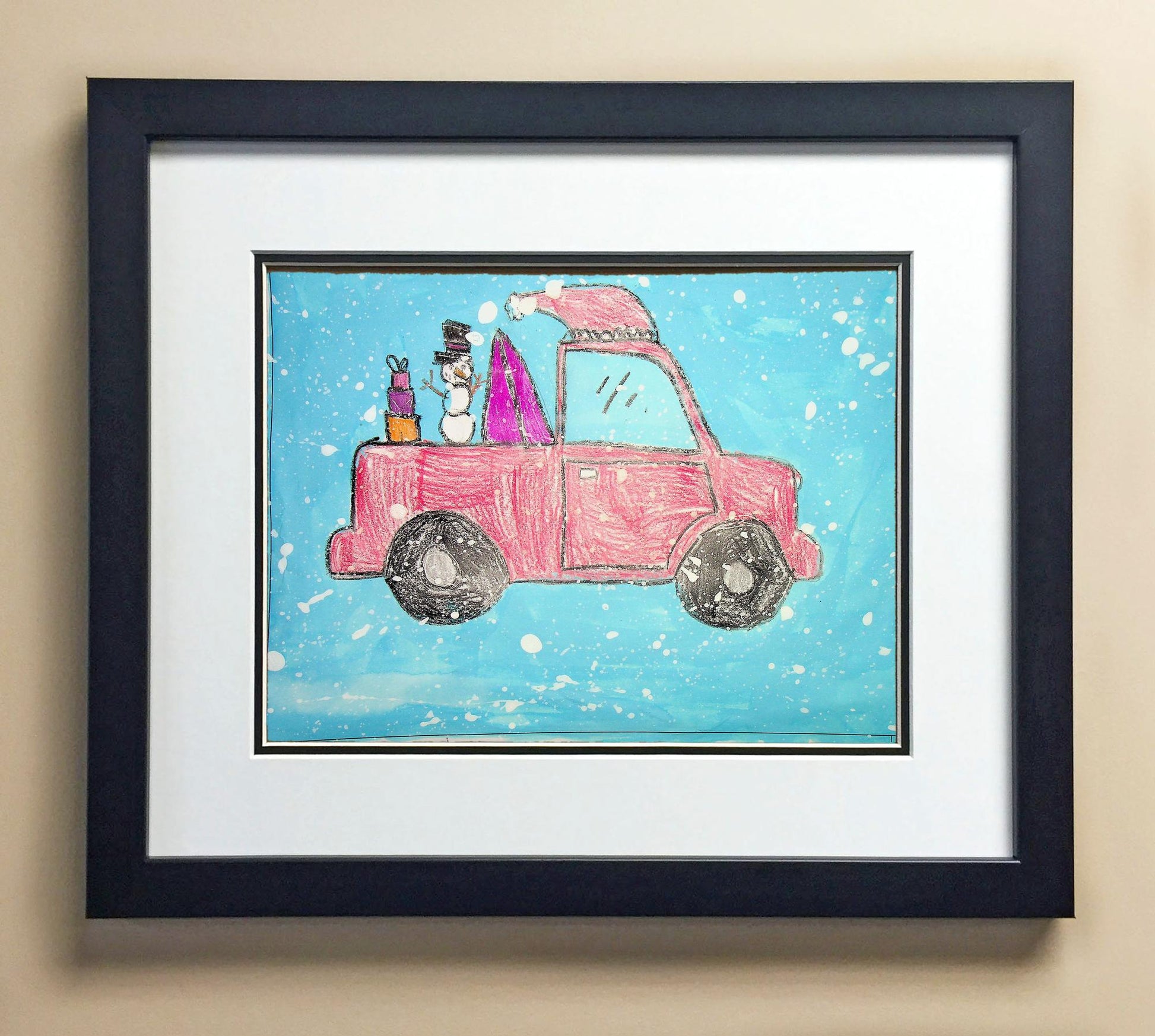 Included with the purchase is the Students Artwork, Frame, double matboard, shatter proof plexiglass, and a ready to hang backerboard with turnbuttons