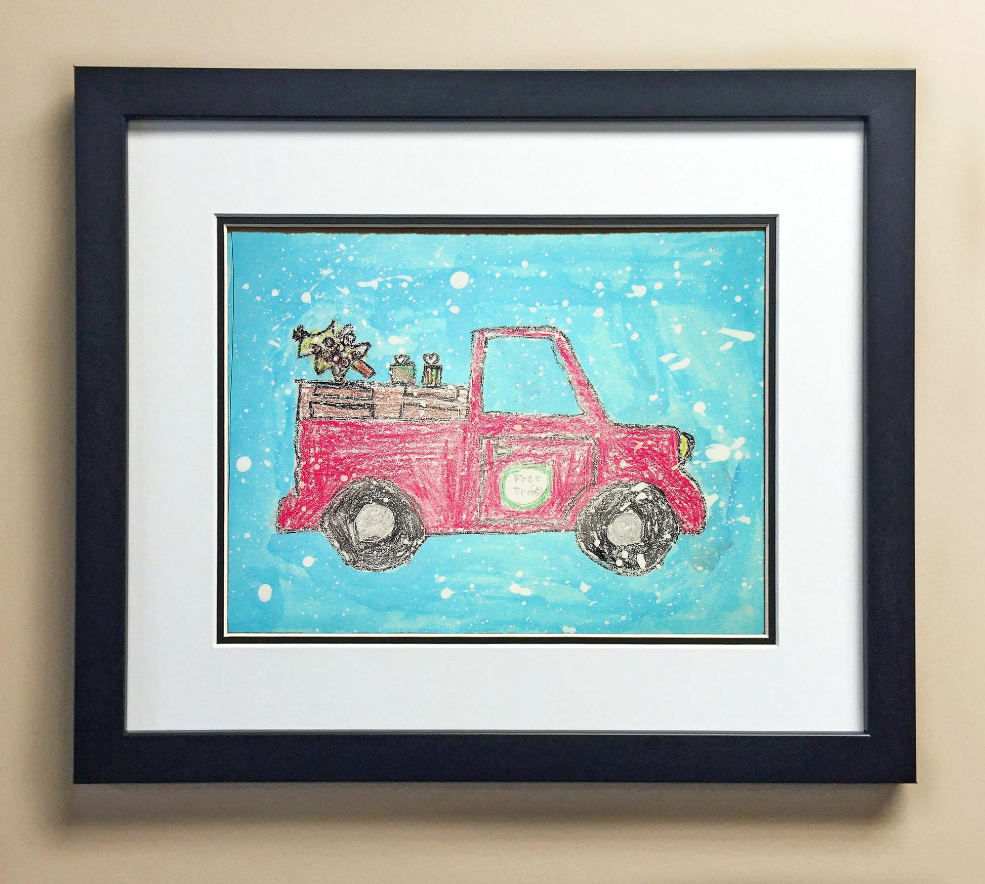 Included with the purchase is the Students Artwork, Frame, double matboard, shatter proof plexiglass, and a ready to hang backerboard with turnbuttons