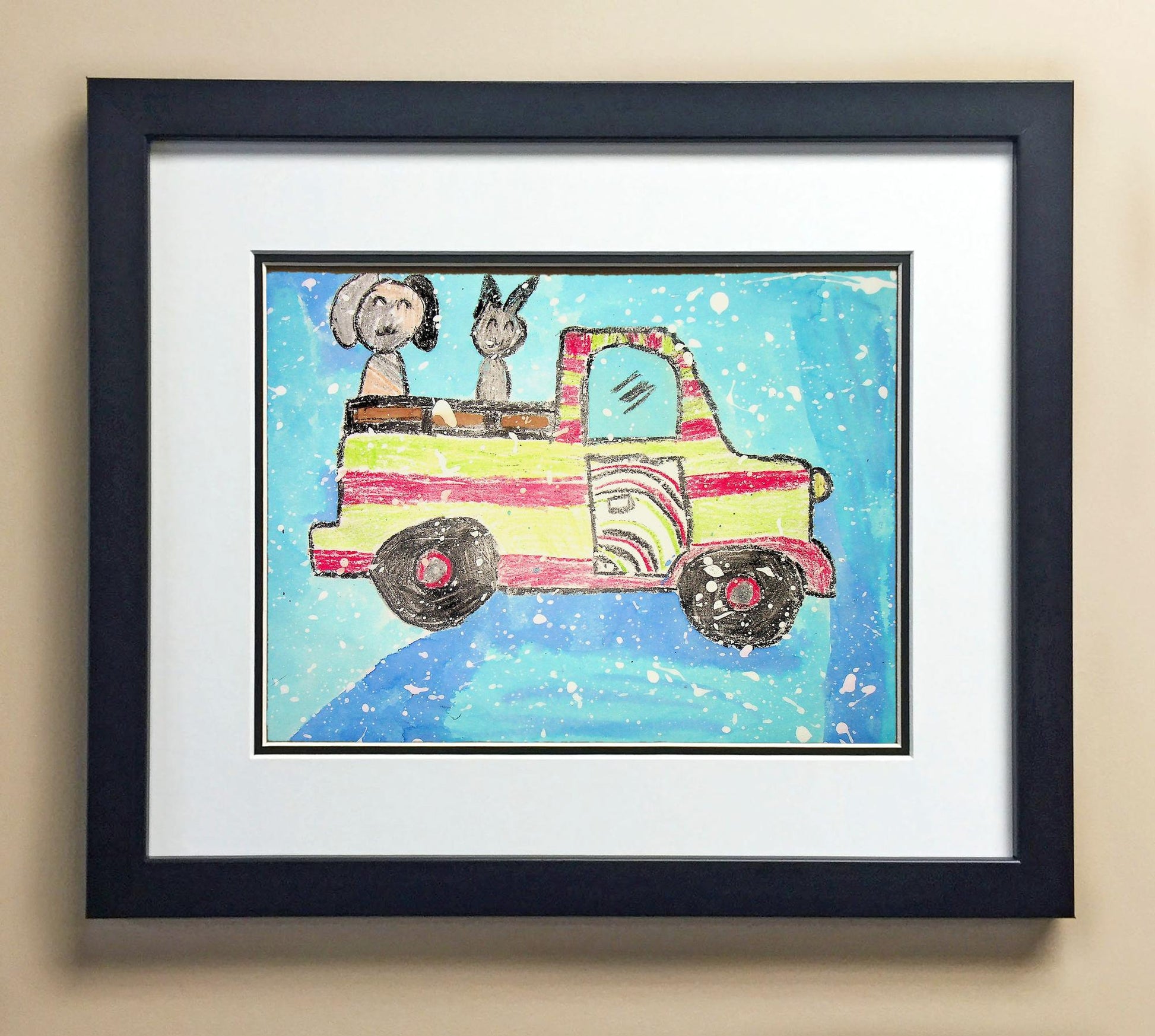 Included with the purchase is the Students Artwork, Frame, double matboard, shatter proof plexiglass, and a ready to hang backerboard with turnbuttons