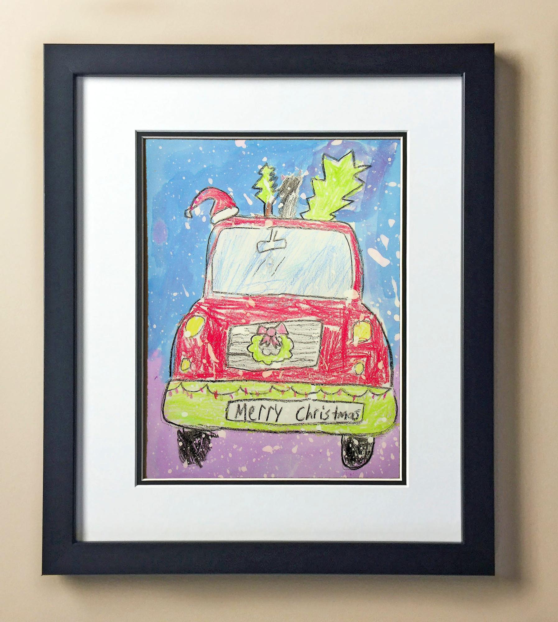 Included with the purchase is the Students Artwork, Frame, double matboard, shatter proof plexiglass, and a ready to hang backerboard with turnbuttons
