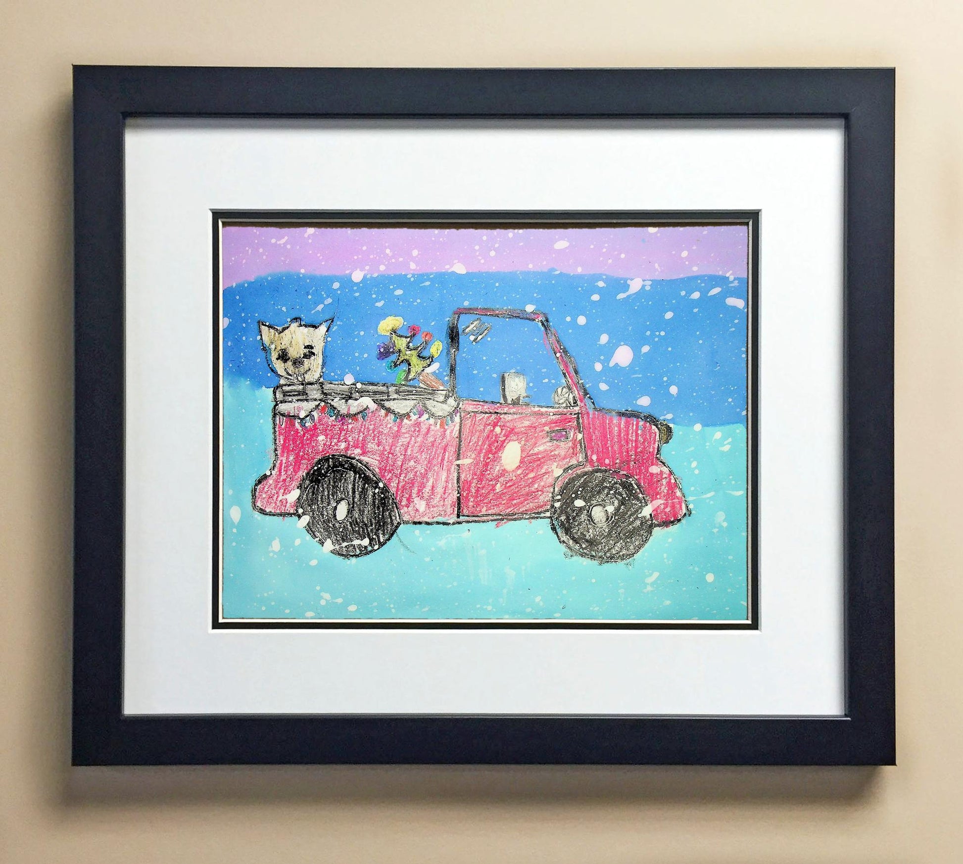 Included with the purchase is the Students Artwork, Frame, double matboard, shatter proof plexiglass, and a ready to hang backerboard with turnbuttons