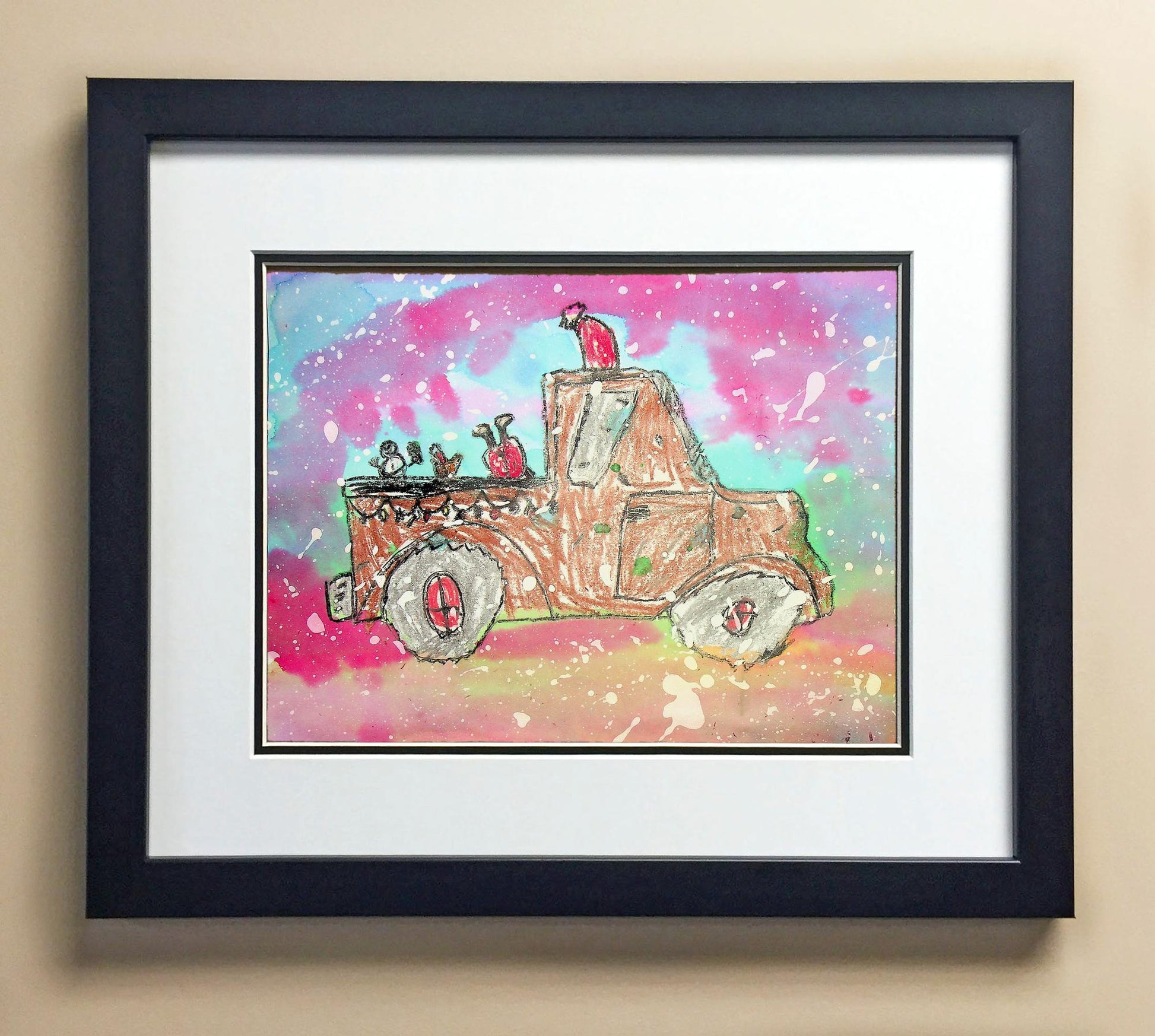 Included with the purchase is the Students Artwork, Frame, double matboard, shatter proof plexiglass, and a ready to hang backerboard with turnbuttons