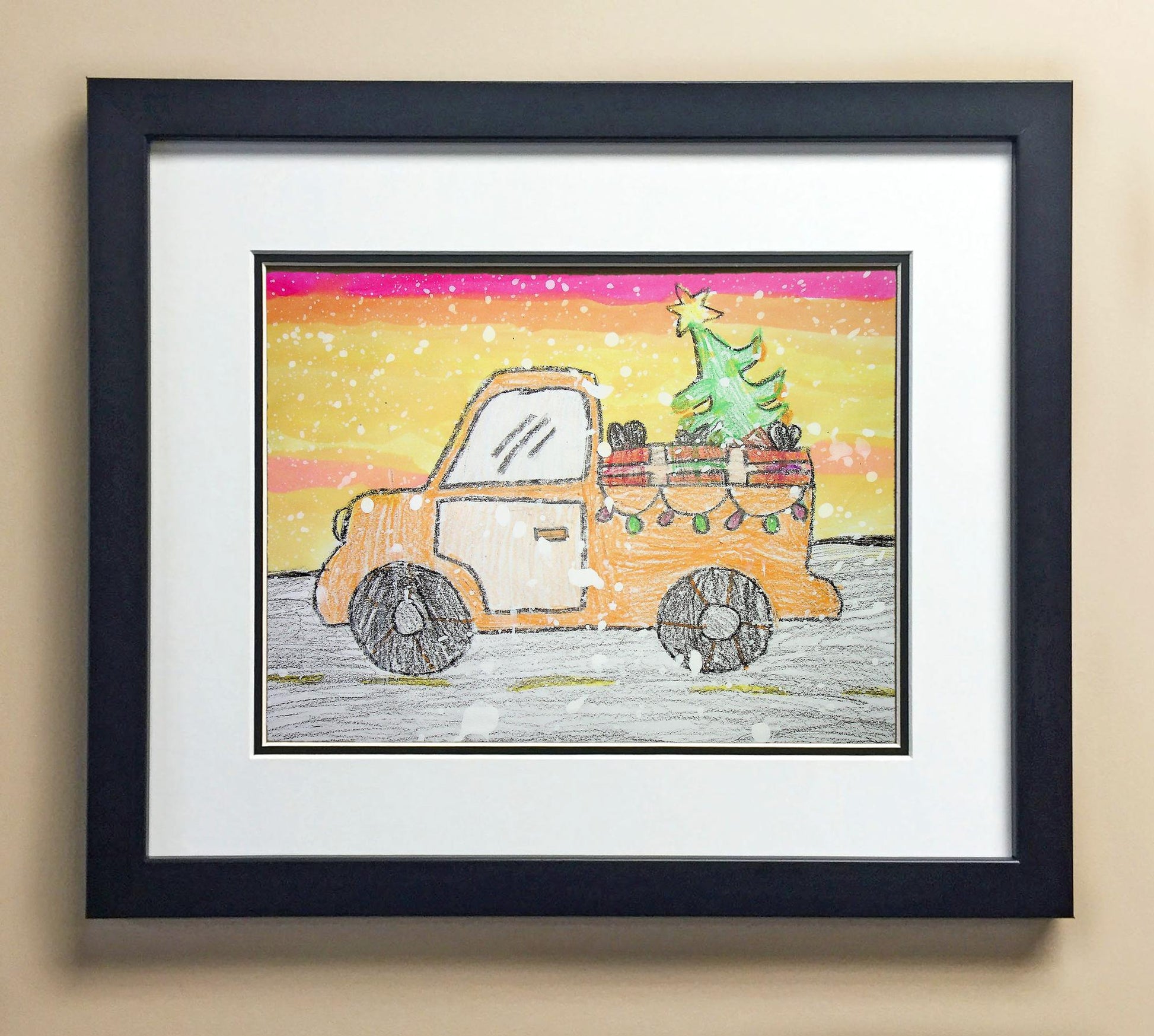 Included with the purchase is the Students Artwork, Frame, double matboard, shatter proof plexiglass, and a ready to hang backerboard with turnbuttons