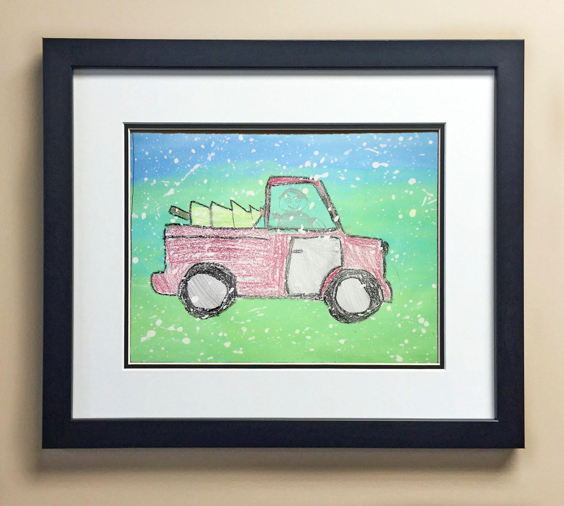 Included with the purchase is the Students Artwork, Frame, double matboard, shatter proof plexiglass, and a ready to hang backerboard with turnbuttons