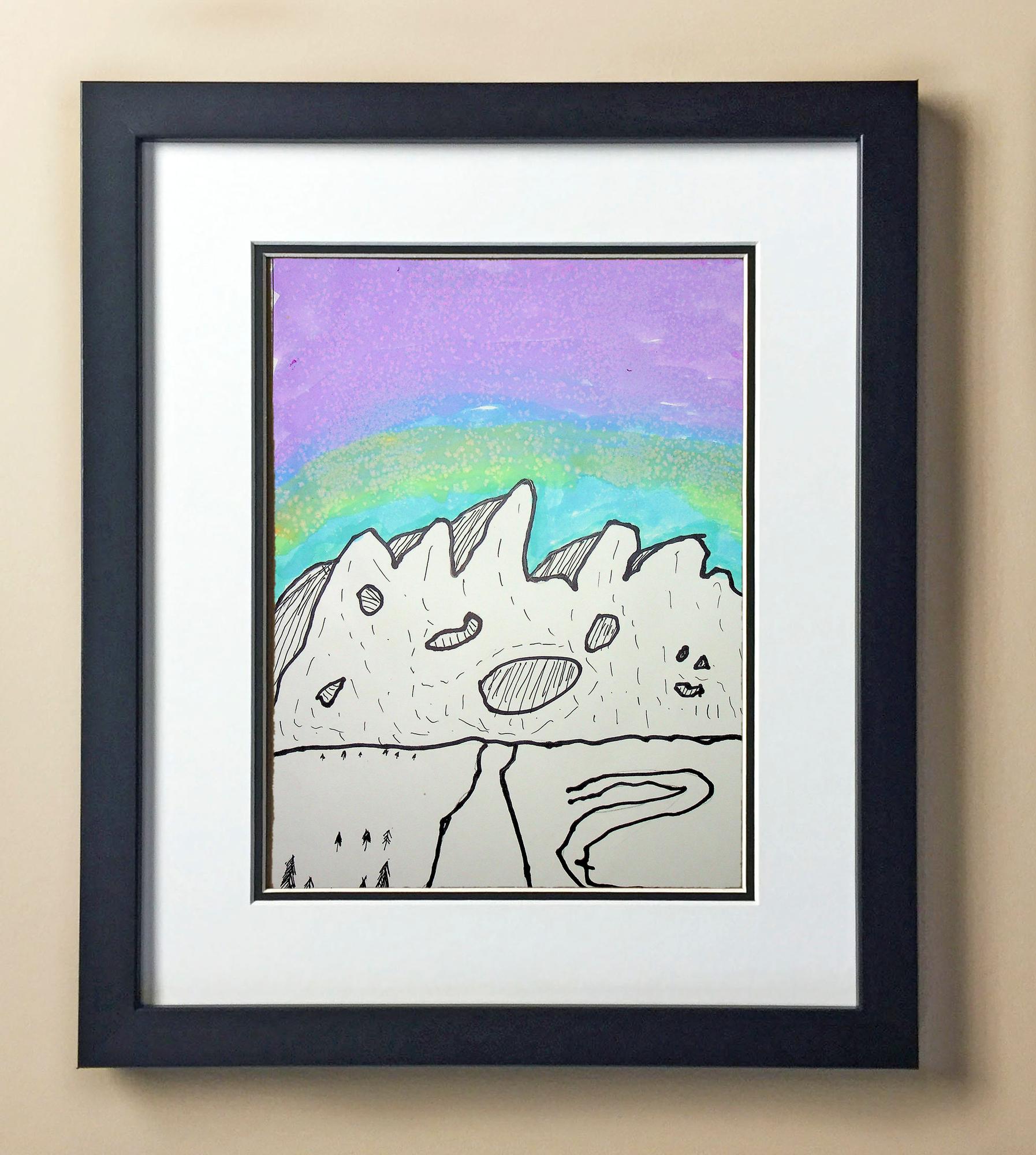 Included with the purchase is the Students Artwork, Frame, double matboard, shatter proof plexiglass, and a ready to hang backerboard with turnbuttons