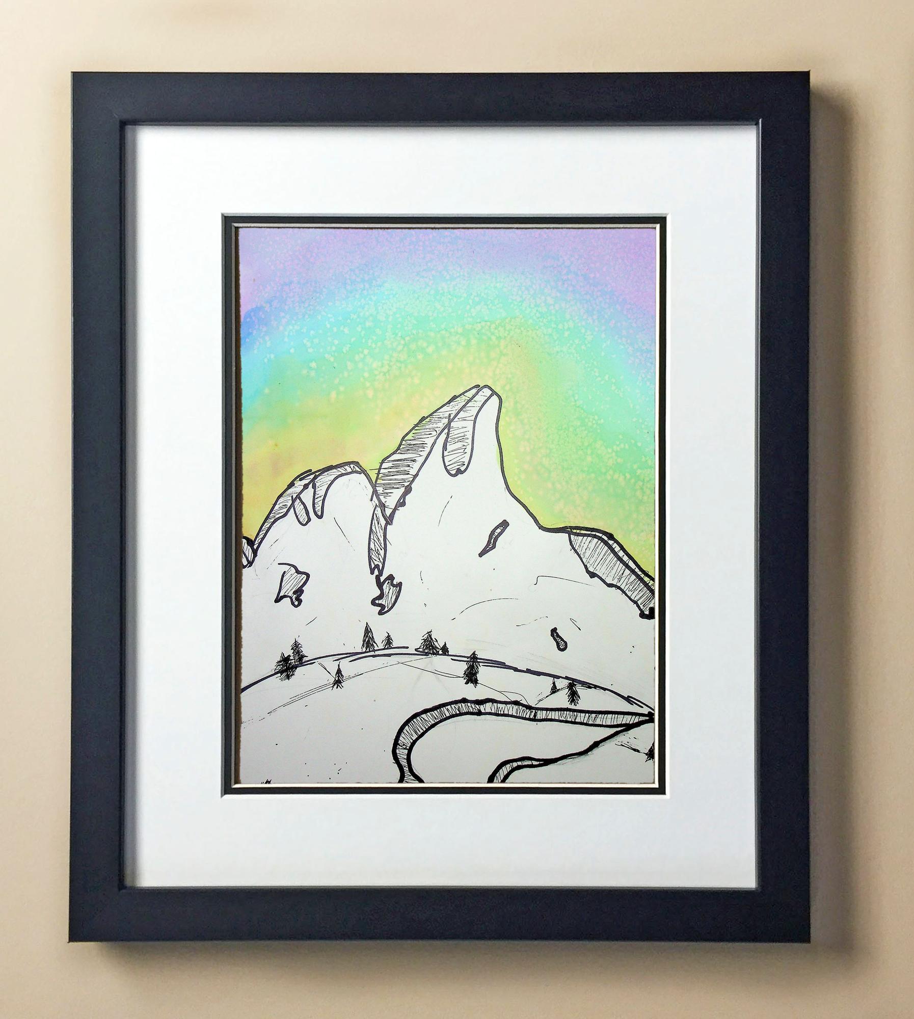 Included with the purchase is the Students Artwork, Frame, double matboard, shatter proof plexiglass, and a ready to hang backerboard with turnbuttons