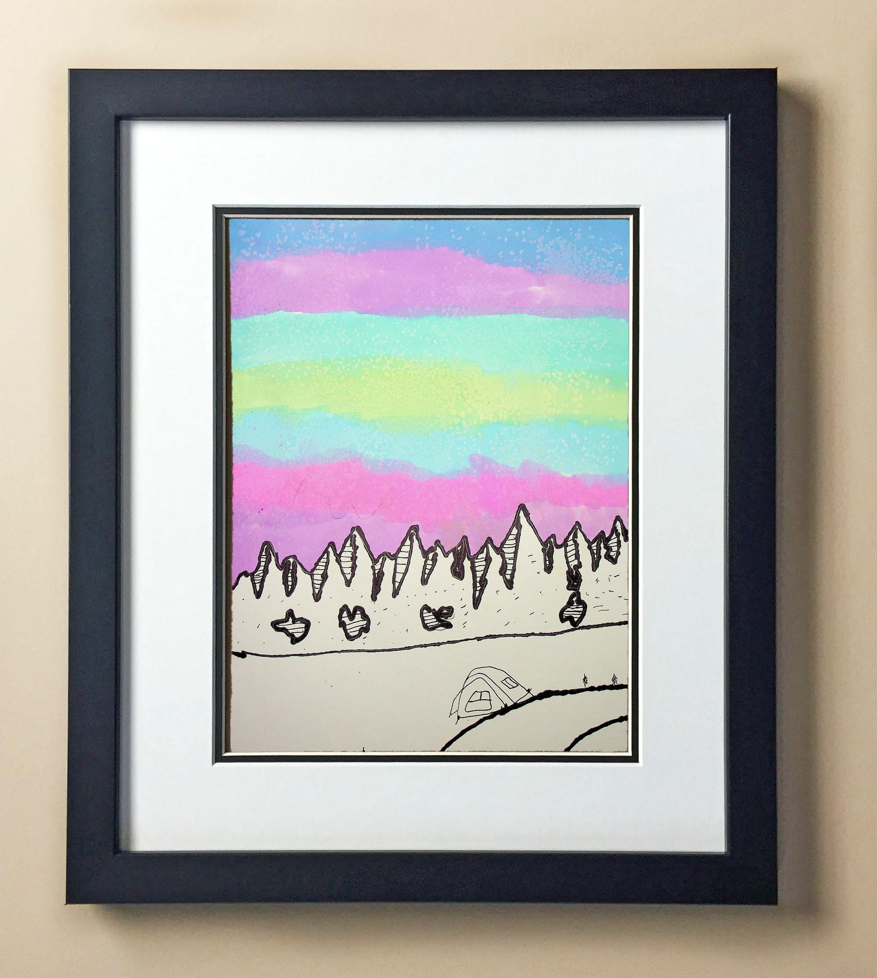 Included with the purchase is the Students Artwork, Frame, double matboard, shatter proof plexiglass, and a ready to hang backerboard with turnbuttons