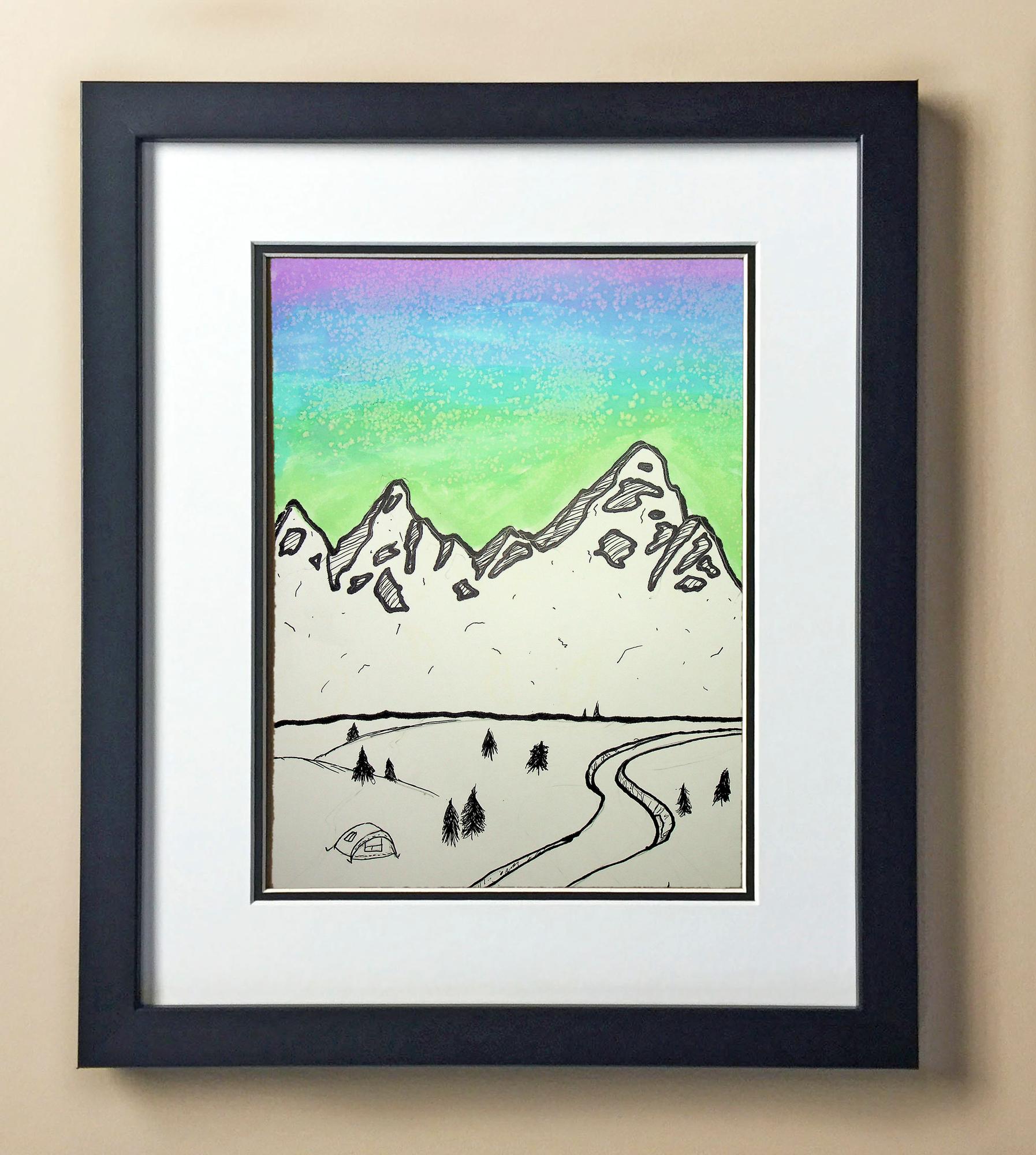 Included with the purchase is the Students Artwork, Frame, double matboard, shatter proof plexiglass, and a ready to hang backerboard with turnbuttons