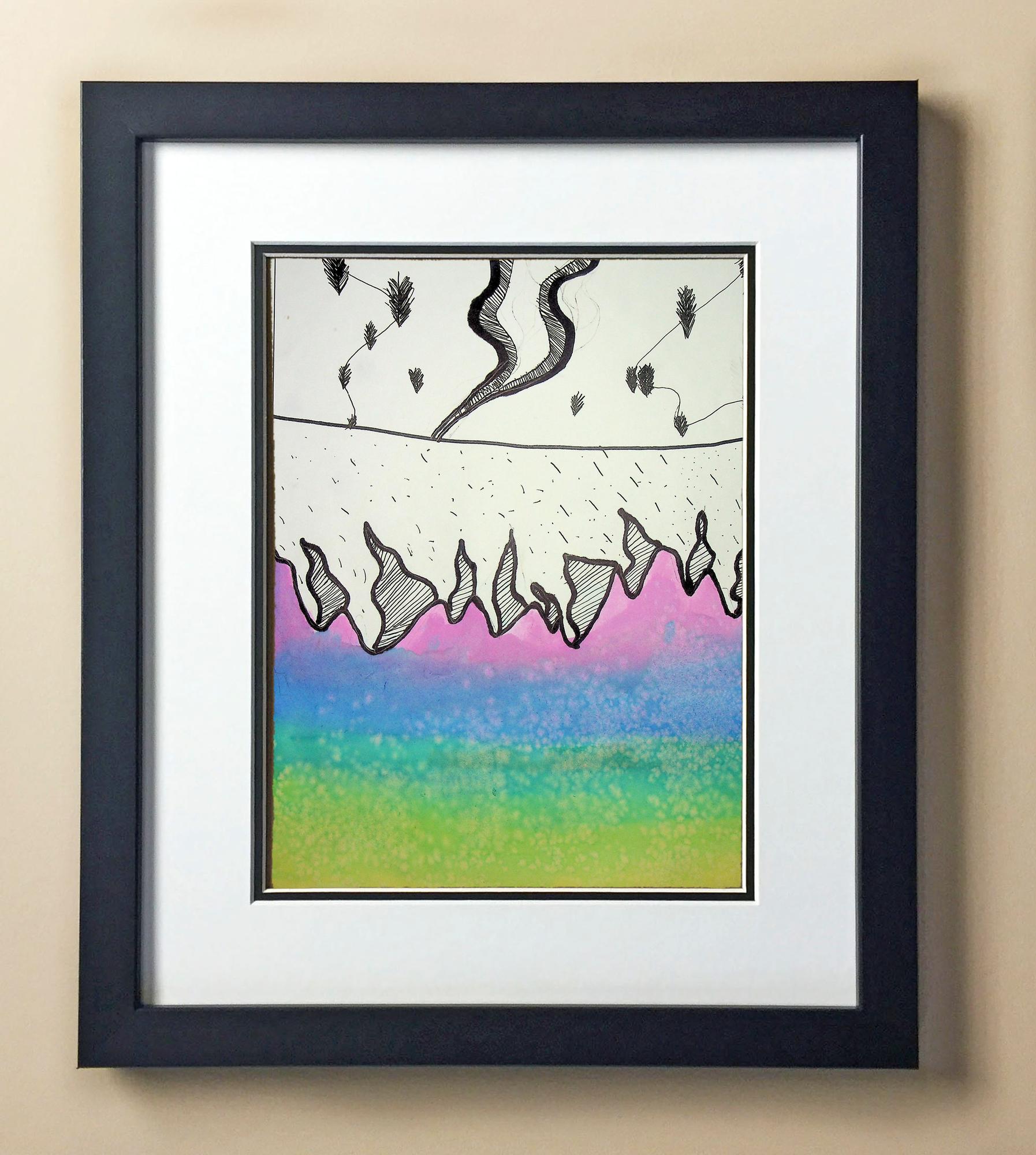 Included with the purchase is the Students Artwork, Frame, double matboard, shatter proof plexiglass, and a ready to hang backerboard with turnbuttons