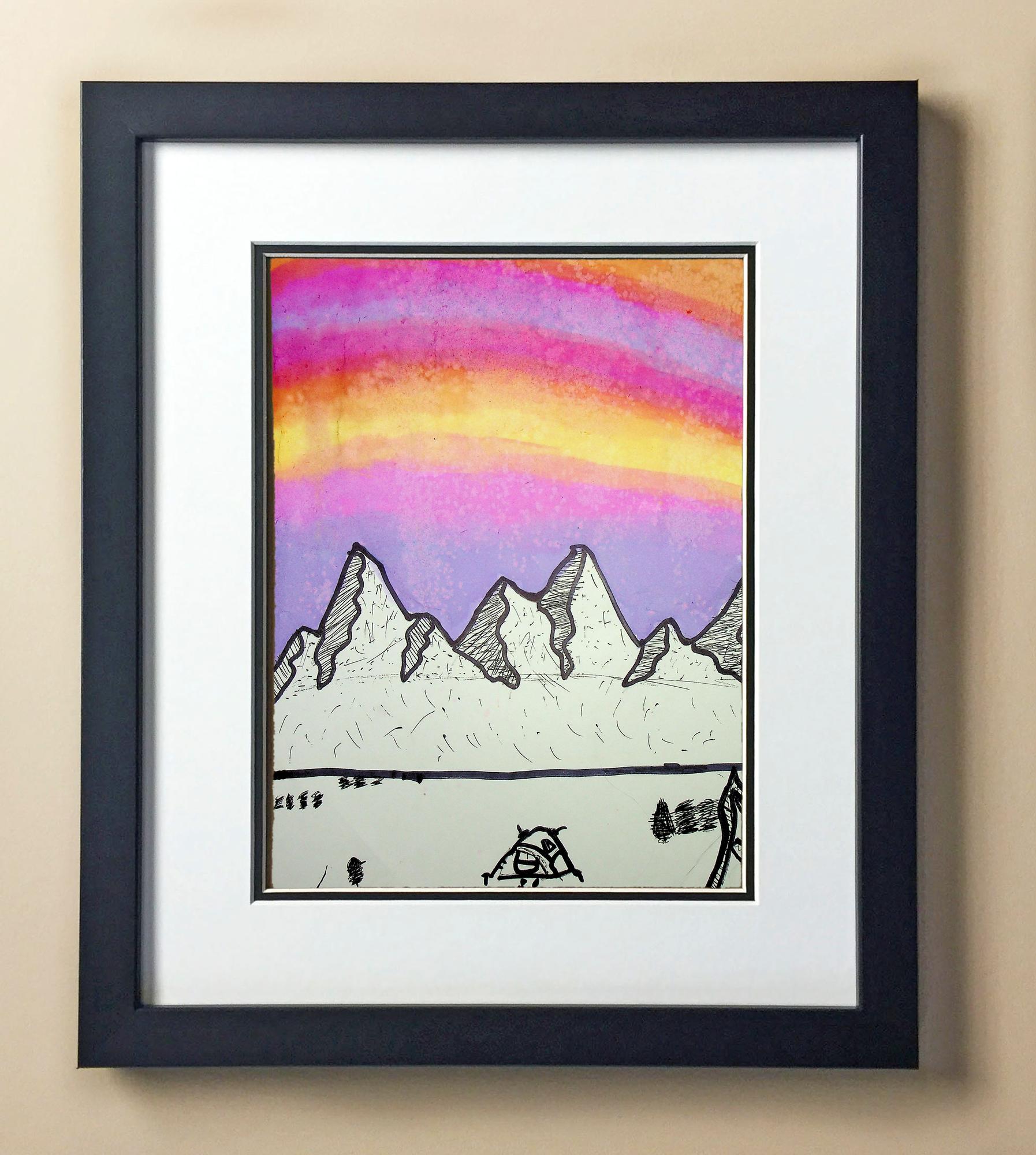 Included with the purchase is the Students Artwork, Frame, double matboard, shatter proof plexiglass, and a ready to hang backerboard with turnbuttons