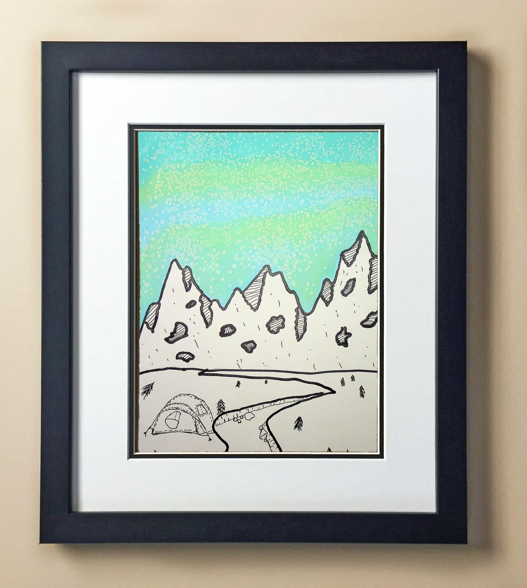 Included with the purchase is the Students Artwork, Frame, double matboard, shatter proof plexiglass, and a ready to hang backerboard with turnbuttons