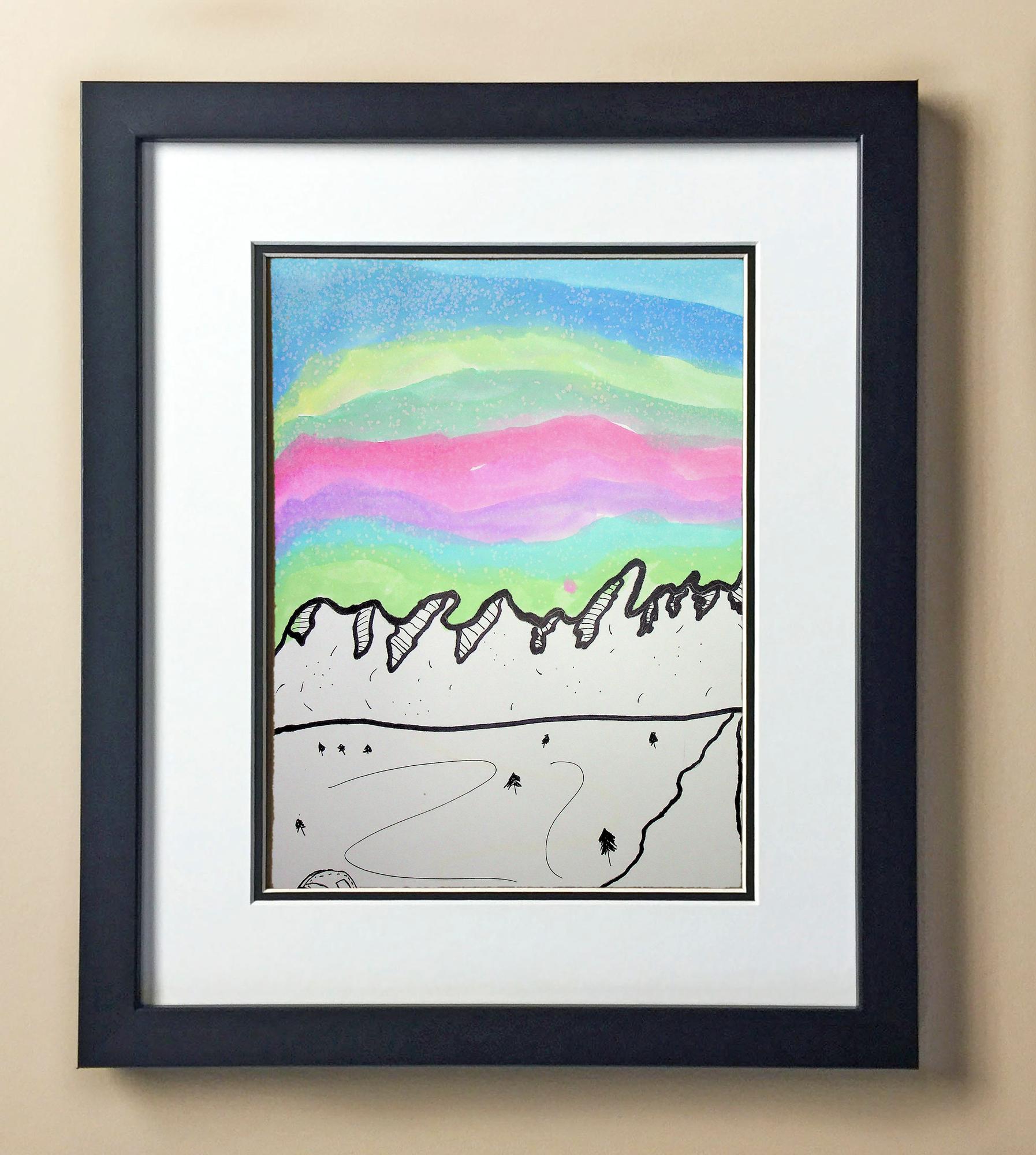 Included with the purchase is the Students Artwork, Frame, double matboard, shatter proof plexiglass, and a ready to hang backerboard with turnbuttons