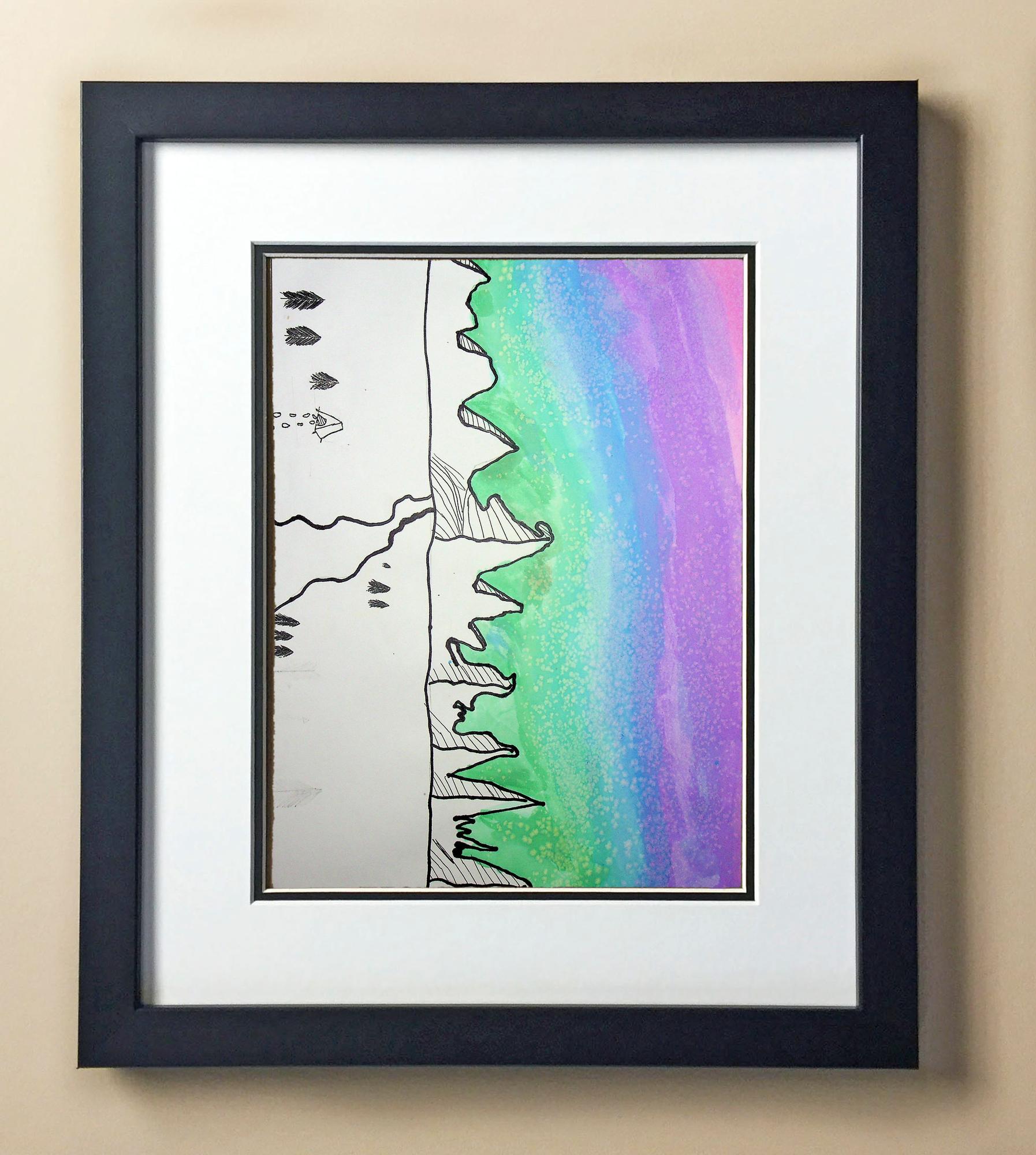 Included with the purchase is the Students Artwork, Frame, double matboard, shatter proof plexiglass, and a ready to hang backerboard with turnbuttons