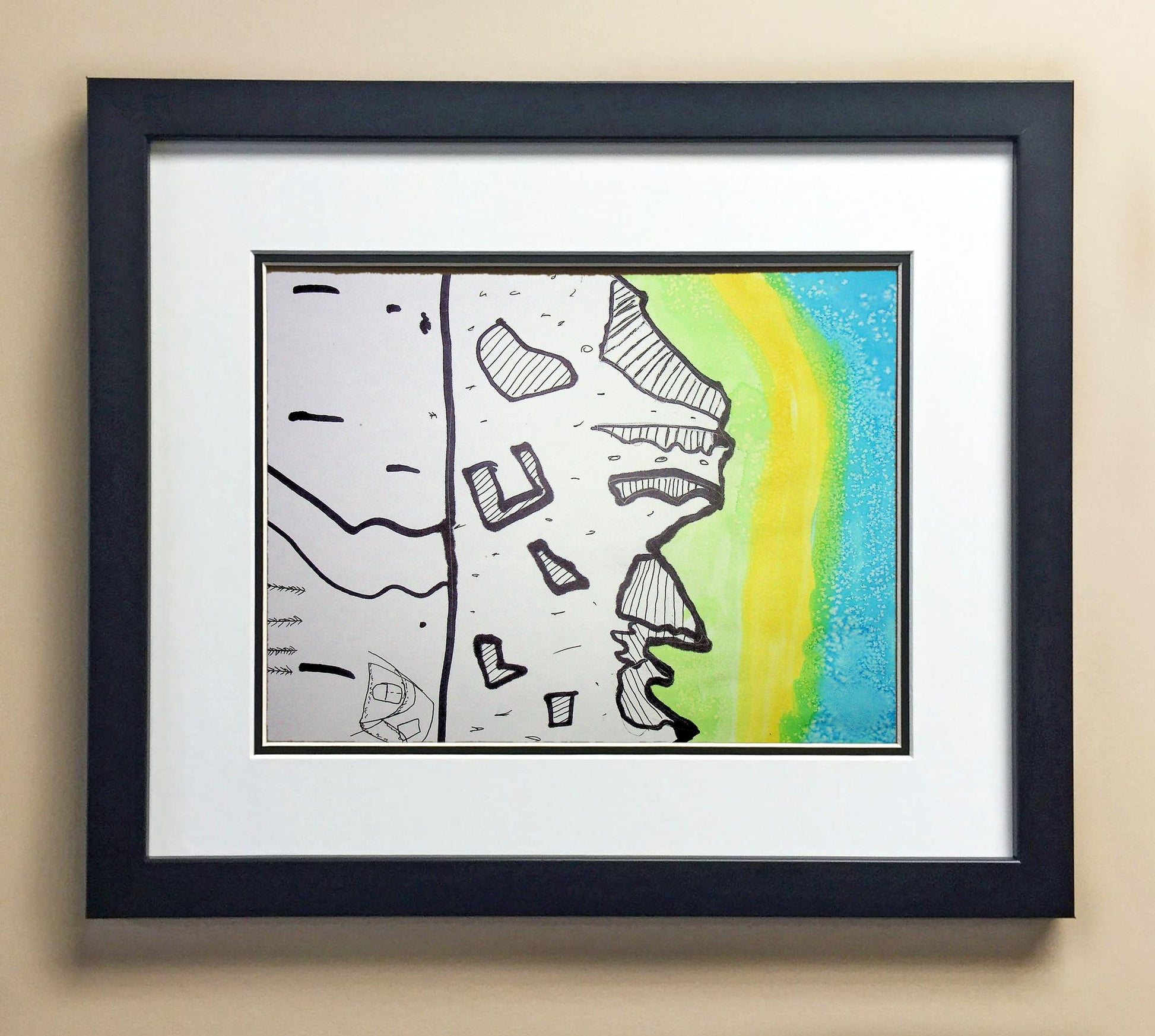 Included with the purchase is the Students Artwork, Frame, double matboard, shatter proof plexiglass, and a ready to hang backerboard with turnbuttons