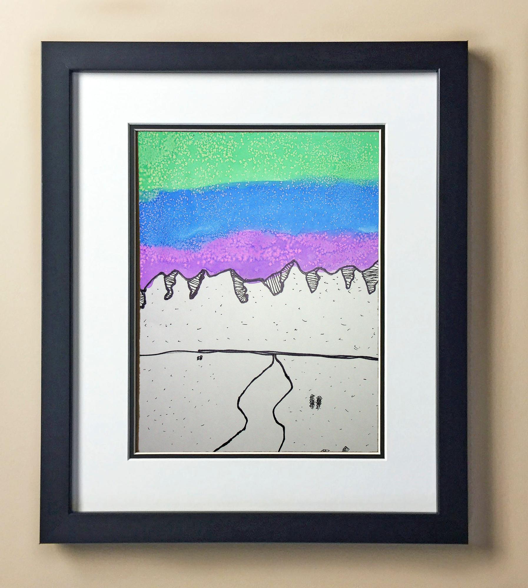 Included with the purchase is the Students Artwork, Frame, double matboard, shatter proof plexiglass, and a ready to hang backerboard with turnbuttons