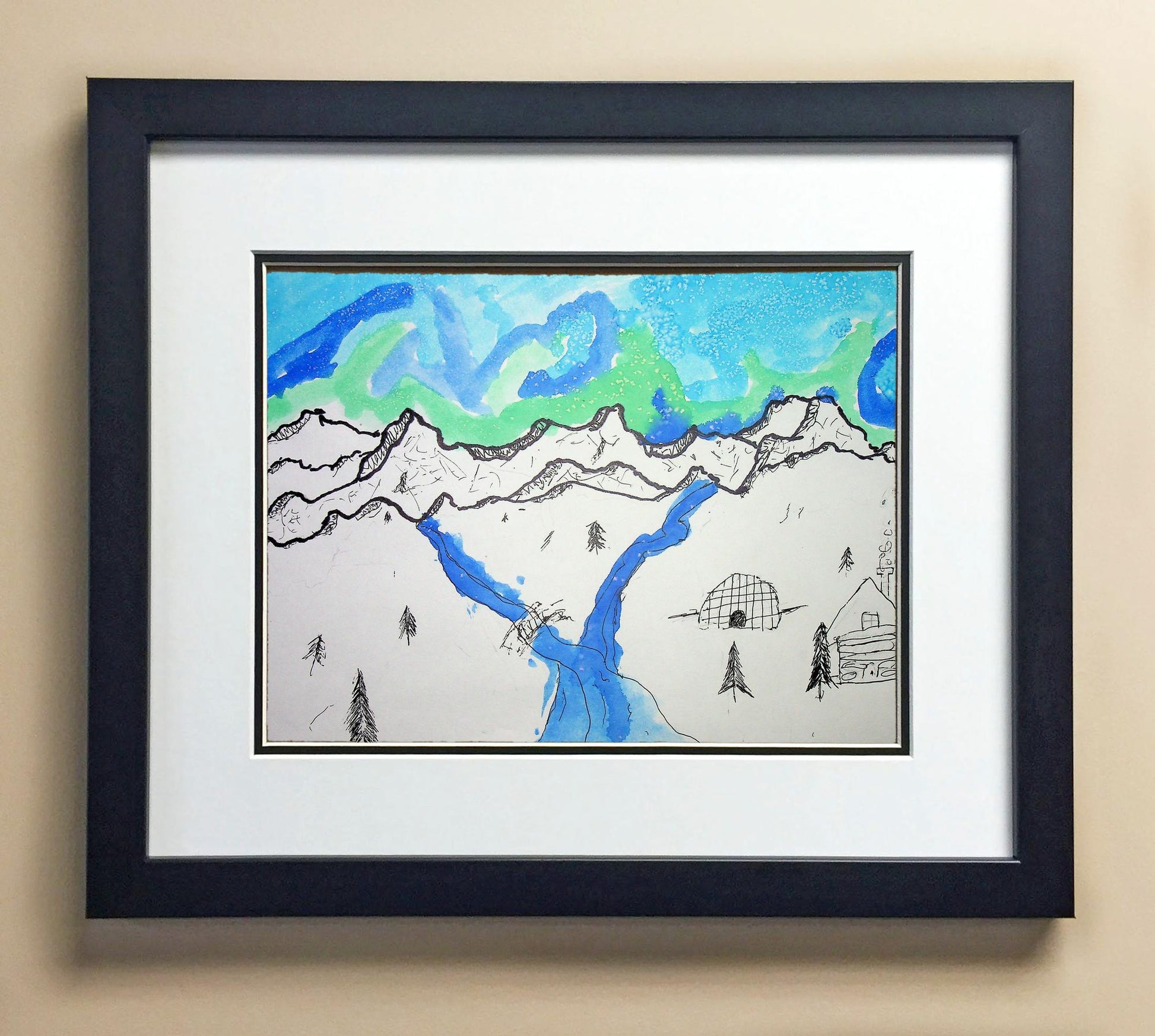 Included with the purchase is the Students Artwork, Frame, double matboard, shatter proof plexiglass, and a ready to hang backerboard with turnbuttons