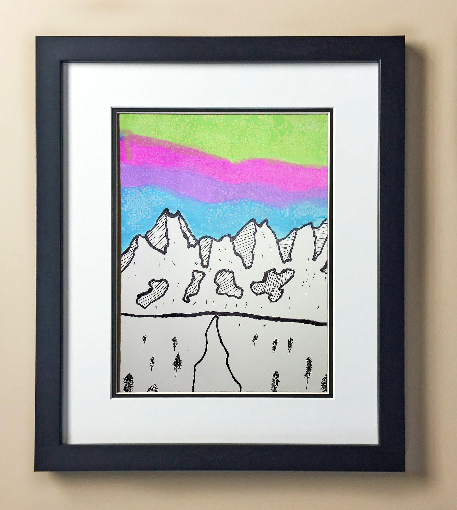 Included with the purchase is the Students Artwork, Frame, double matboard, shatter proof plexiglass, and a ready to hang backerboard with turnbuttons