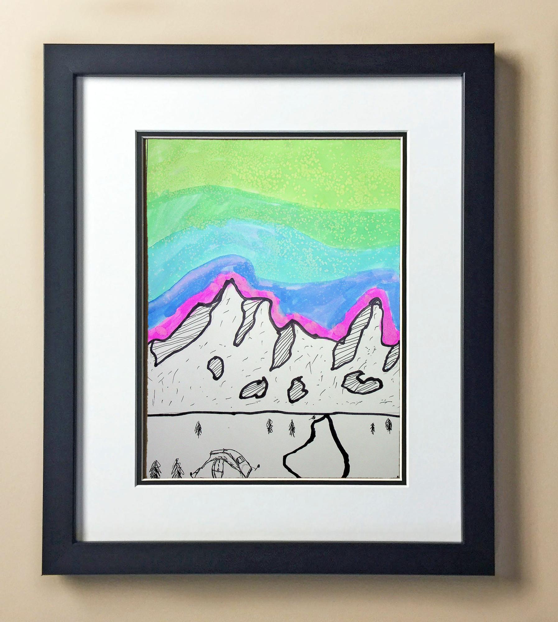 Included with the purchase is the Students Artwork, Frame, double matboard, shatter proof plexiglass, and a ready to hang backerboard with turnbuttons