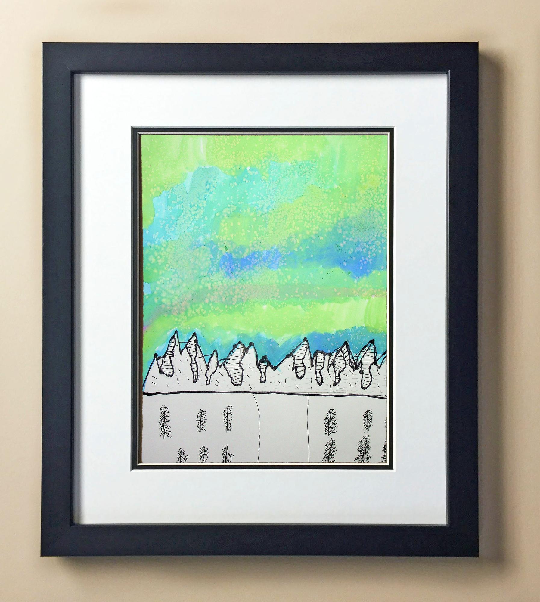 Included with the purchase is the Students Artwork, Frame, double matboard, shatter proof plexiglass, and a ready to hang backerboard with turnbuttons
