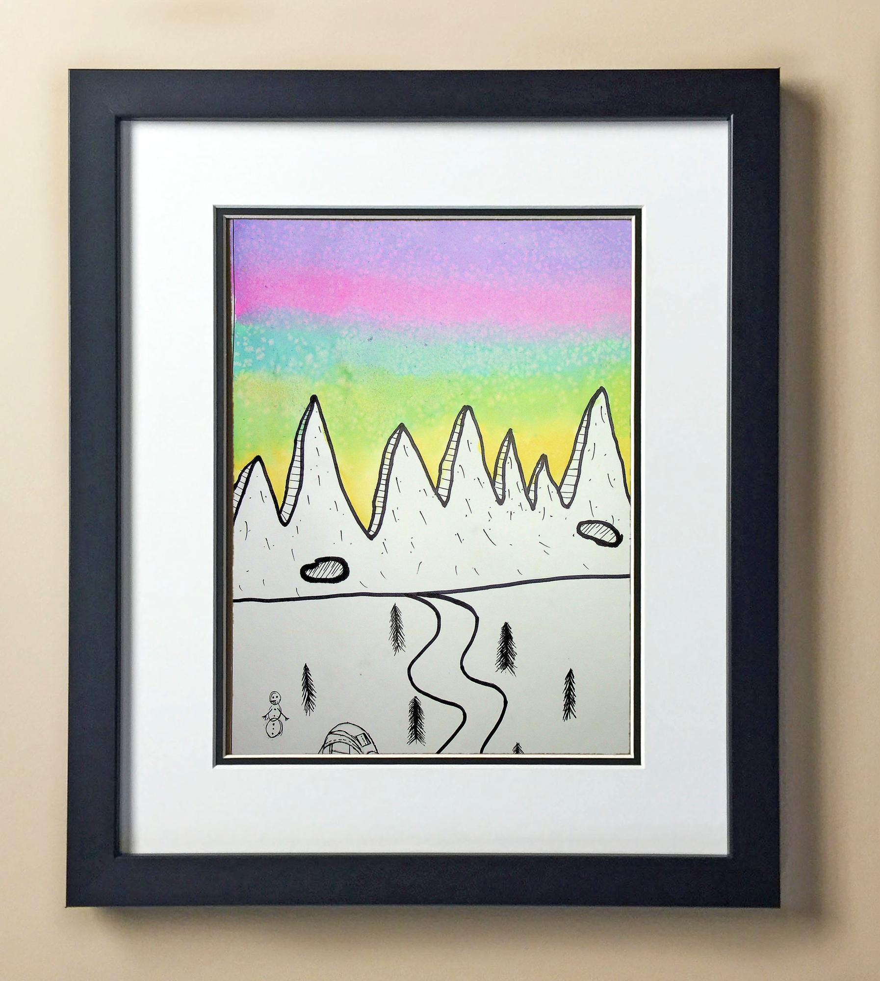 Included with the purchase is the Students Artwork, Frame, double matboard, shatter proof plexiglass, and a ready to hang backerboard with turnbuttons