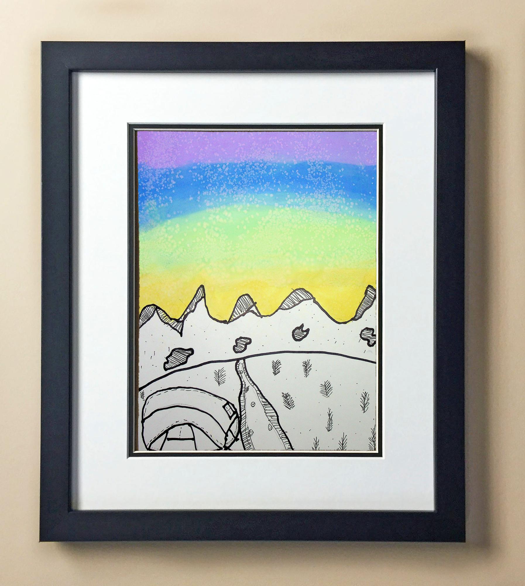 Included with the purchase is the Students Artwork, Frame, double matboard, shatter proof plexiglass, and a ready to hang backerboard with turnbuttons