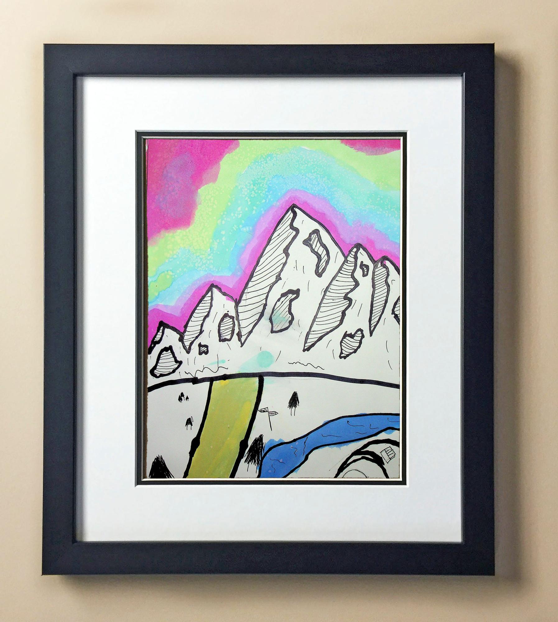 Included with the purchase is the Students Artwork, Frame, double matboard, shatter proof plexiglass, and a ready to hang backerboard with turnbuttons