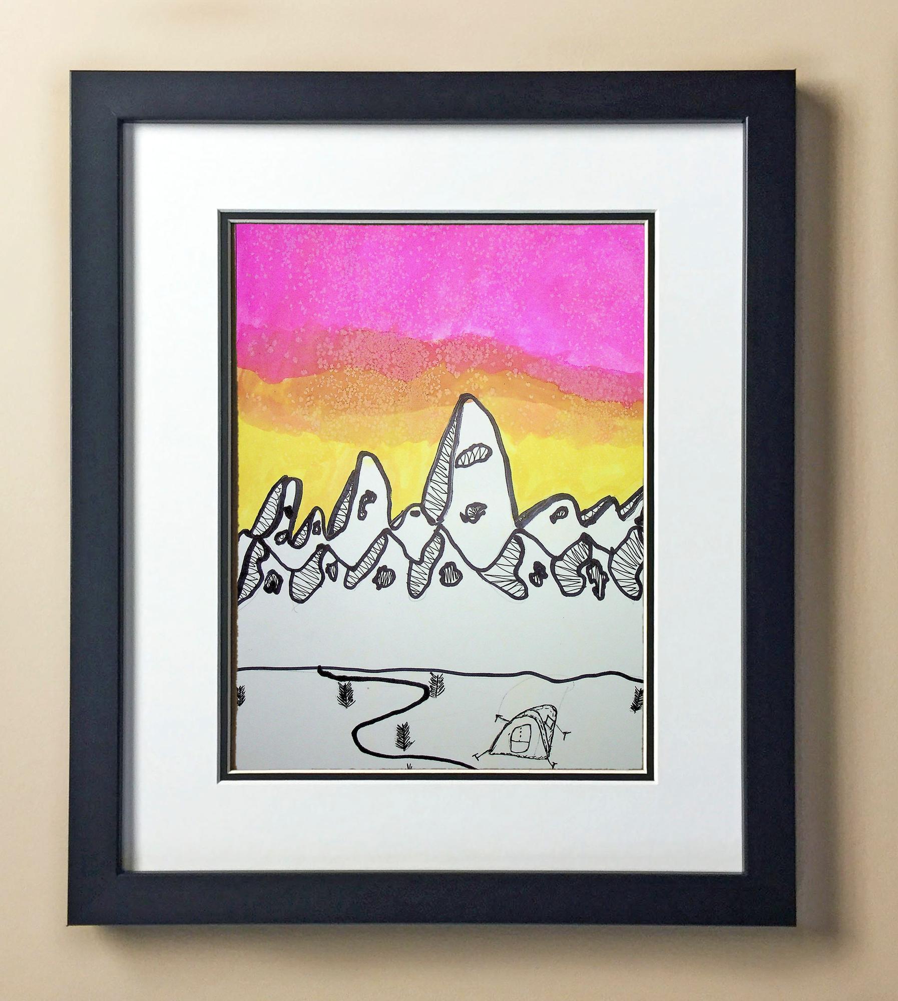 Included with the purchase is the Students Artwork, Frame, double matboard, shatter proof plexiglass, and a ready to hang backerboard with turnbuttons