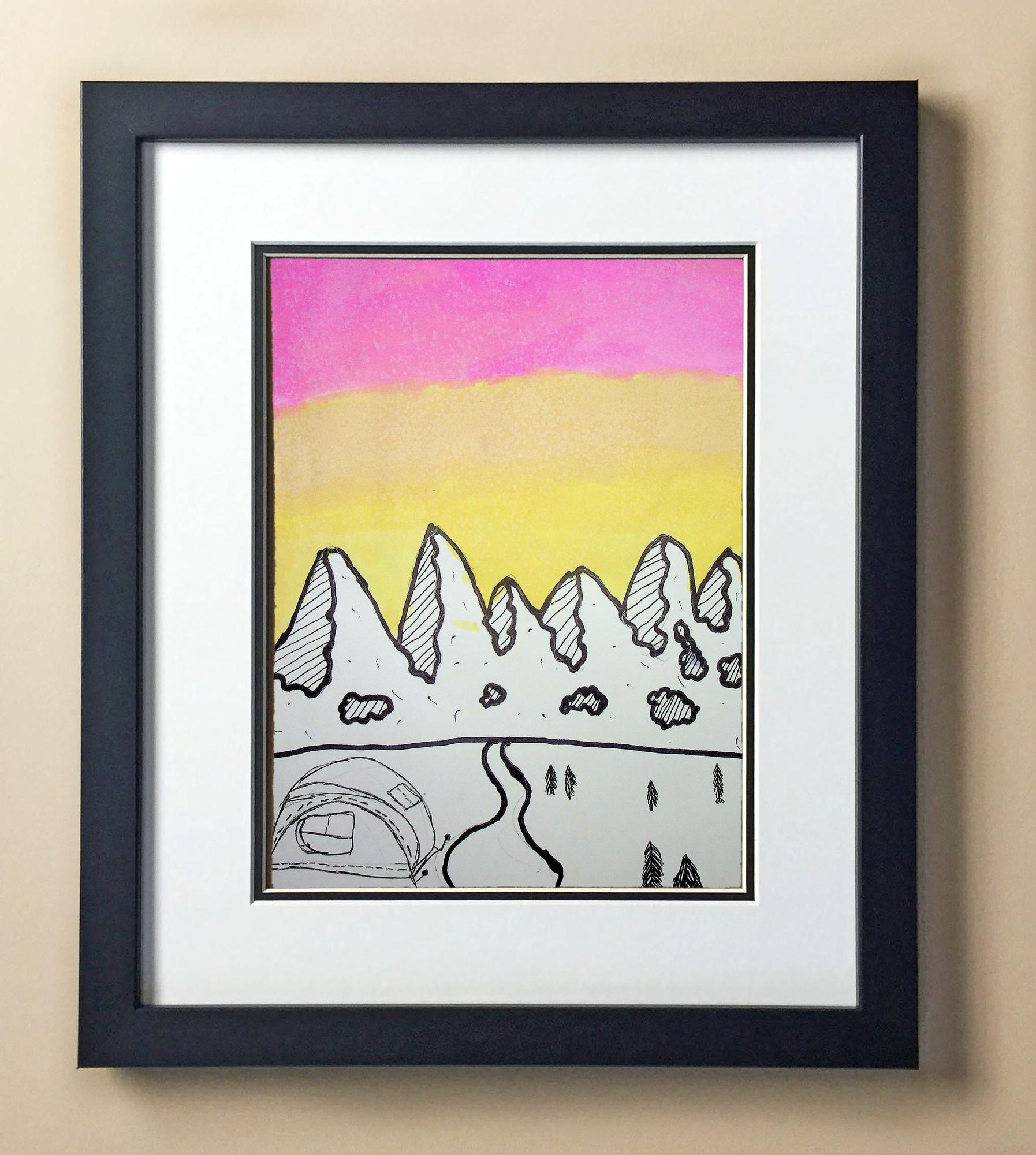 Included with the purchase is the Students Artwork, Frame, double matboard, shatter proof plexiglass, and a ready to hang backerboard with turnbuttons