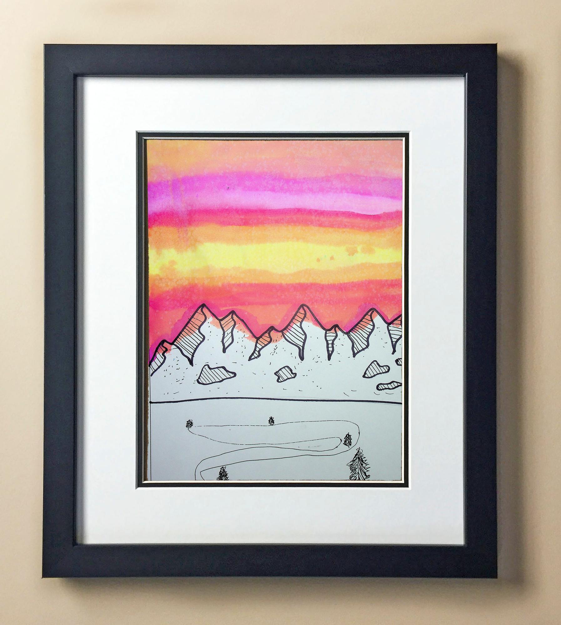 Included with the purchase is the Students Artwork, Frame, double matboard, shatter proof plexiglass, and a ready to hang backerboard with turnbuttons