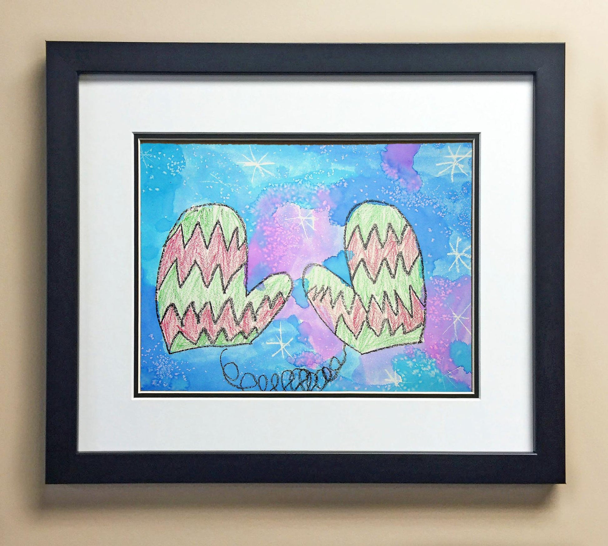 Included with the purchase is the Students Artwork, Frame, double matboard, shatter proof plexiglass, and a ready to hang backerboard with turnbuttons