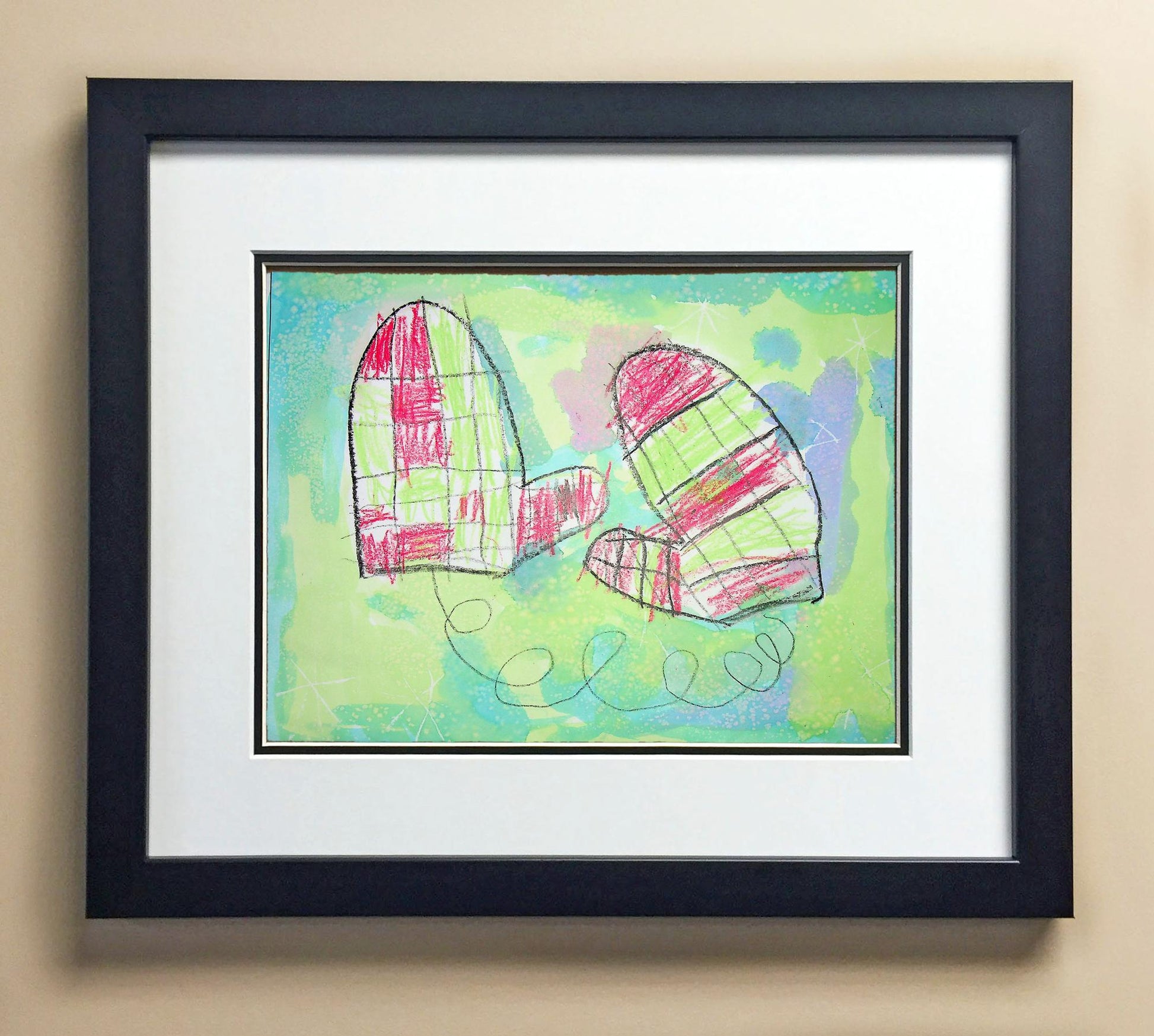 Included with the purchase is the Students Artwork, Frame, double matboard, shatter proof plexiglass, and a ready to hang backerboard with turnbuttons