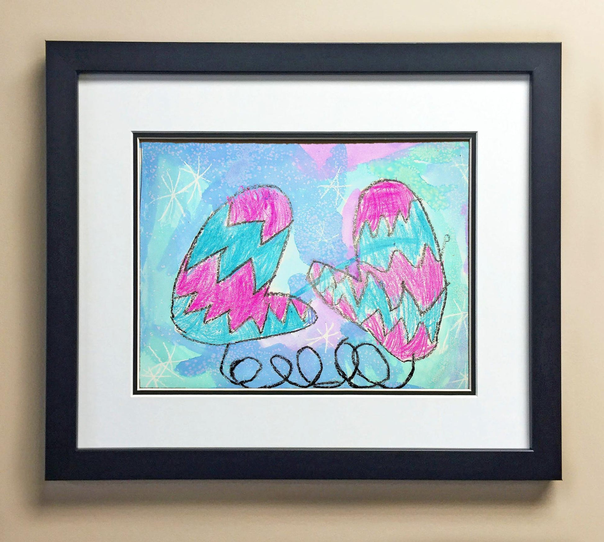 Included with the purchase is the Students Artwork, Frame, double matboard, shatter proof plexiglass, and a ready to hang backerboard with turnbuttons
