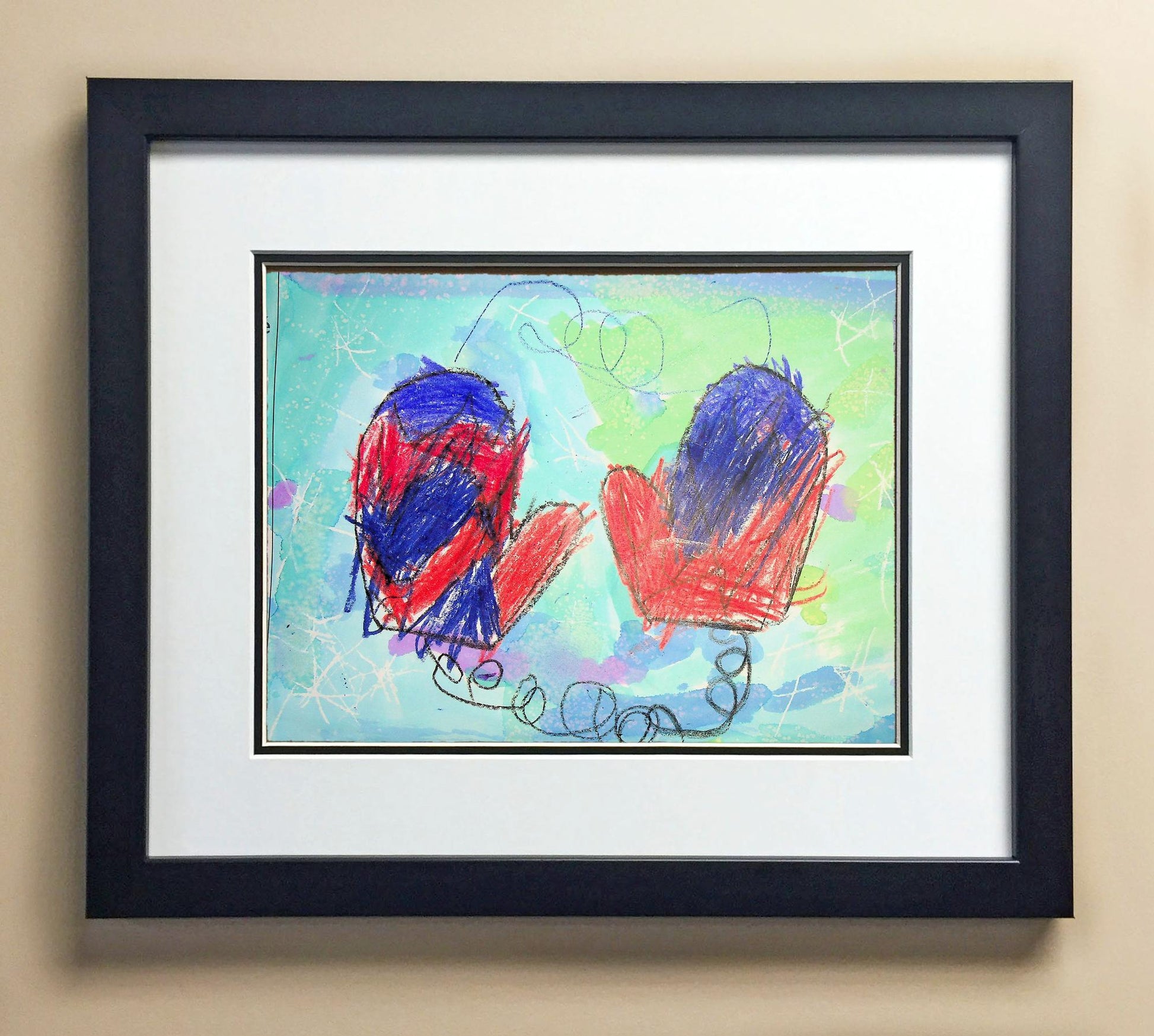 Included with the purchase is the Students Artwork, Frame, double matboard, shatter proof plexiglass, and a ready to hang backerboard with turnbuttons