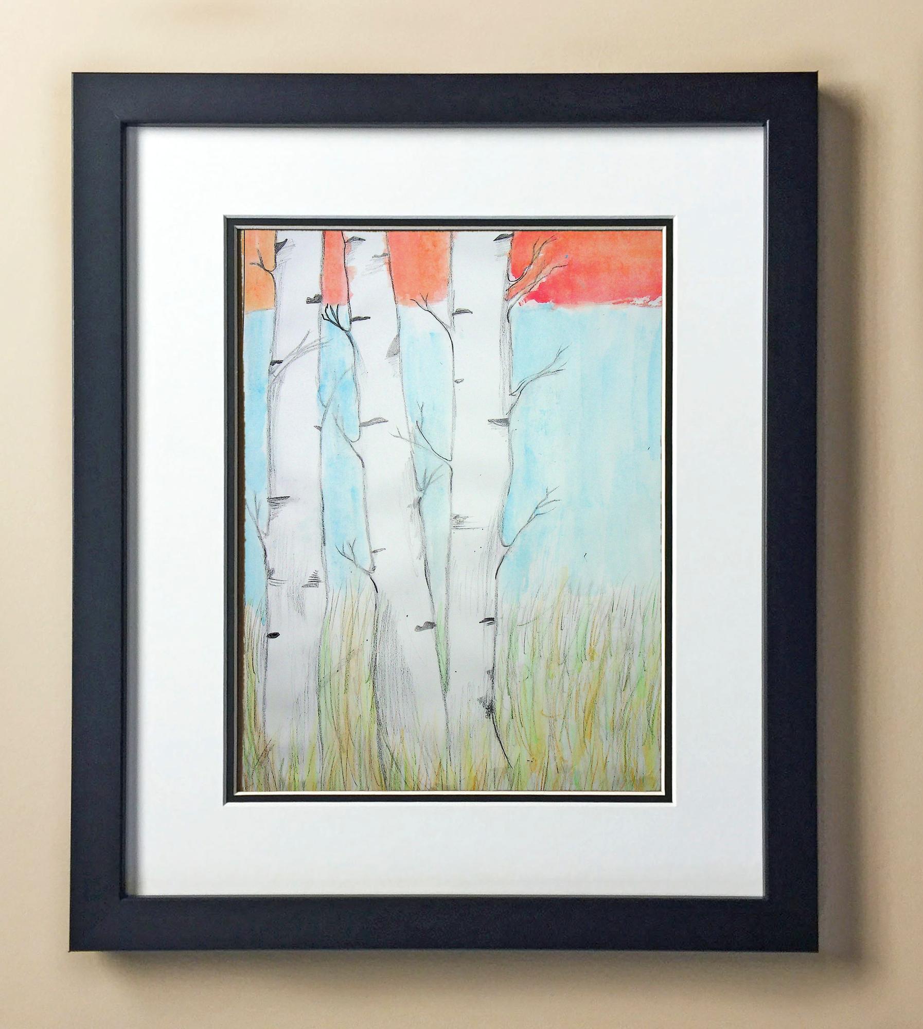 Included with the purchase is the Students Artwork, Frame, double matboard, shatter proof plexiglass, and a ready to hang backerboard with turnbuttons