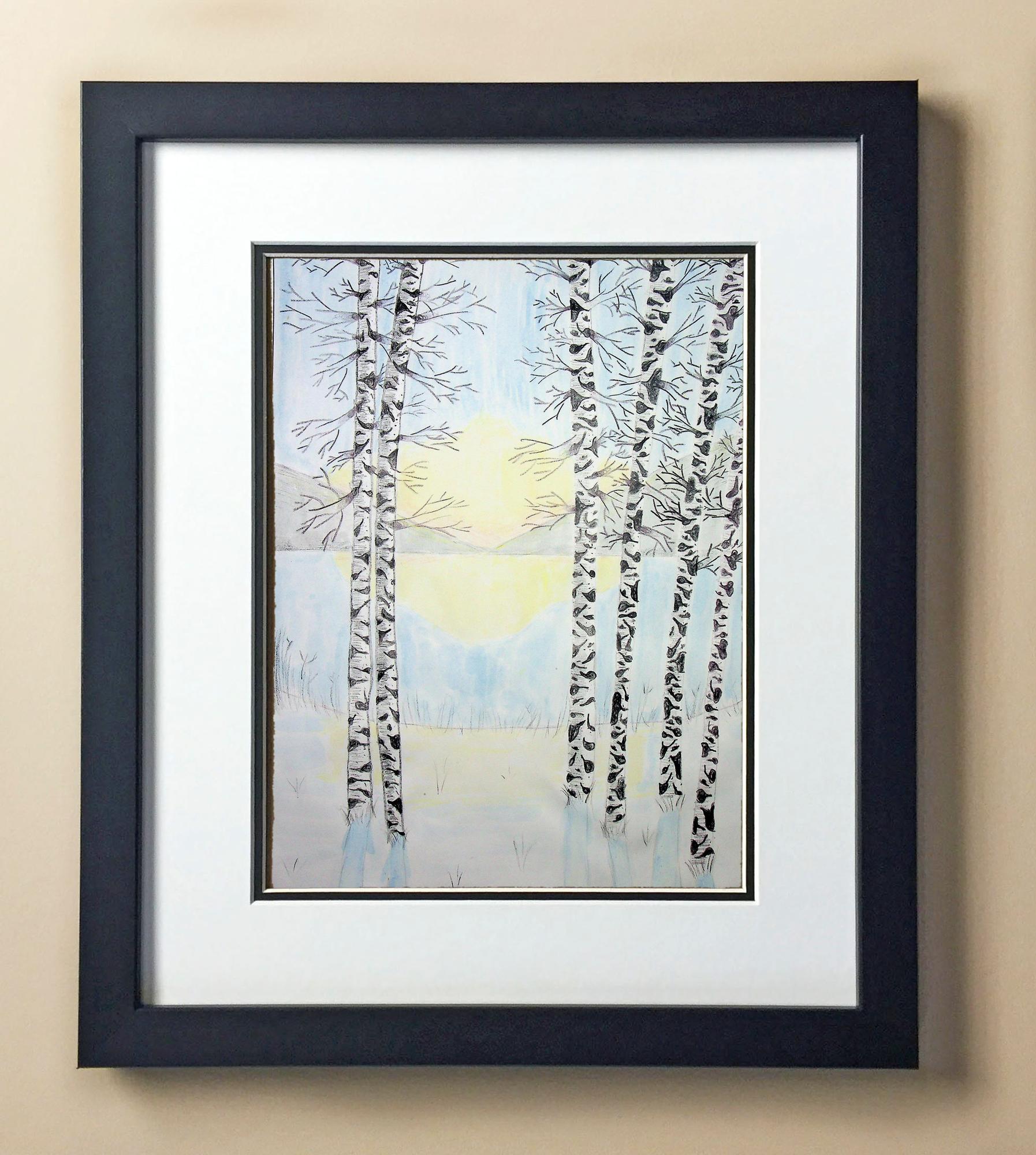 Included with the purchase is the Students Artwork, Frame, double matboard, shatter proof plexiglass, and a ready to hang backerboard with turnbuttons