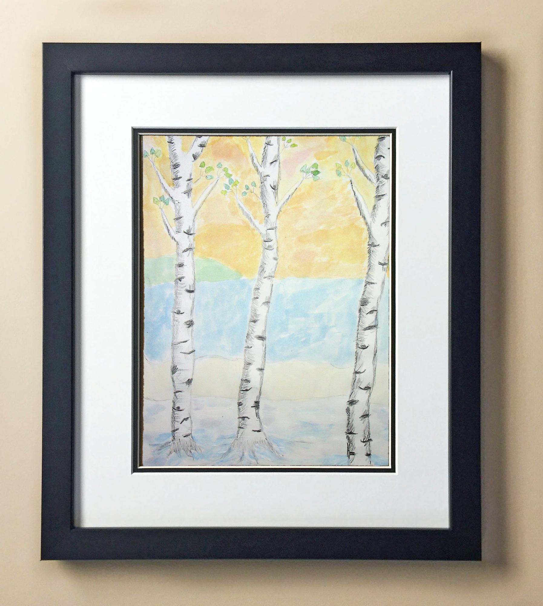 Included with the purchase is the Students Artwork, Frame, double matboard, shatter proof plexiglass, and a ready to hang backerboard with turnbuttons