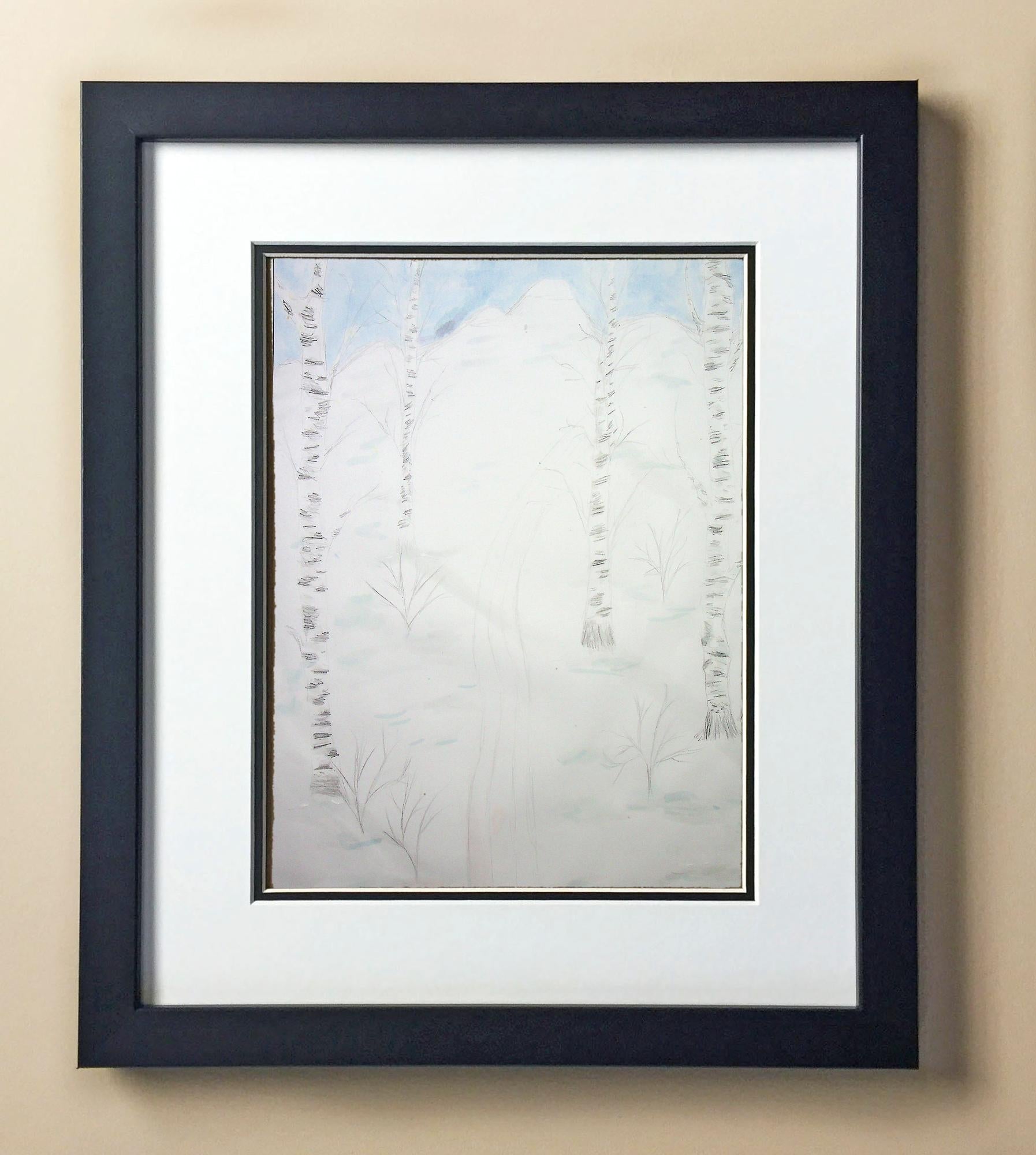 Included with the purchase is the Students Artwork, Frame, double matboard, shatter proof plexiglass, and a ready to hang backerboard with turnbuttons