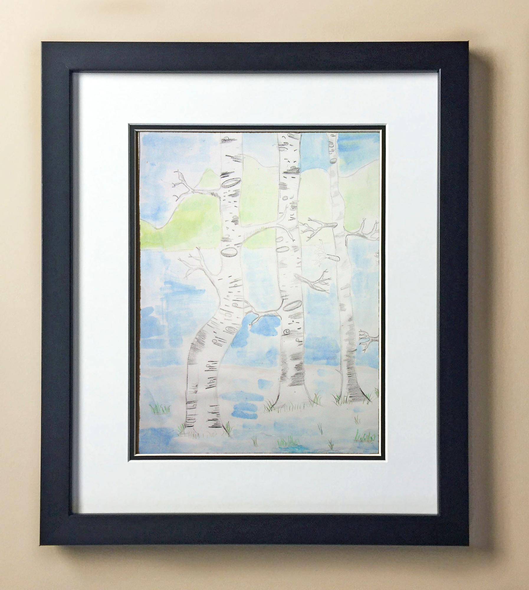 Included with the purchase is the Students Artwork, Frame, double matboard, shatter proof plexiglass, and a ready to hang backerboard with turnbuttons