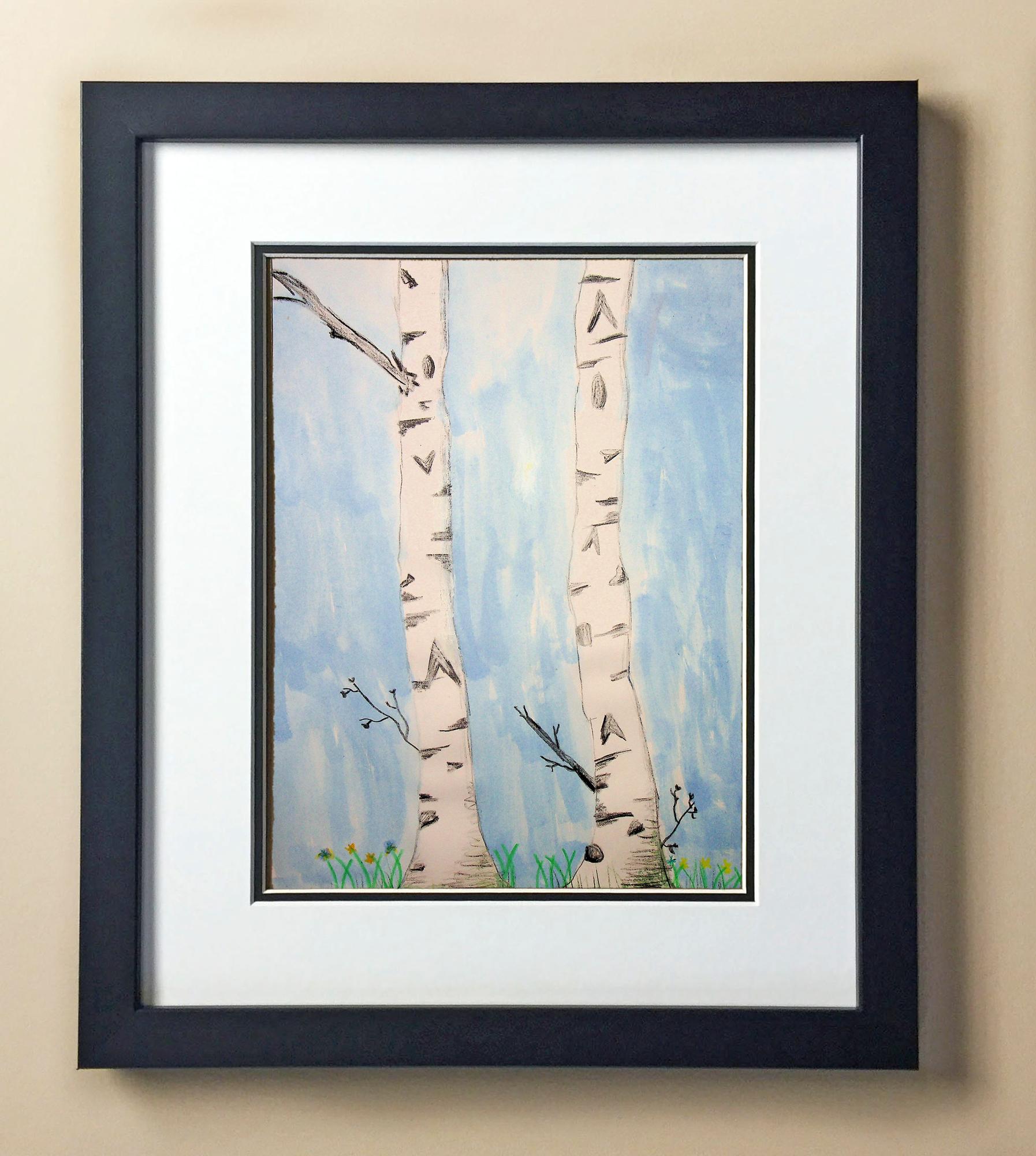 Included with the purchase is the Students Artwork, Frame, double matboard, shatter proof plexiglass, and a ready to hang backerboard with turnbuttons