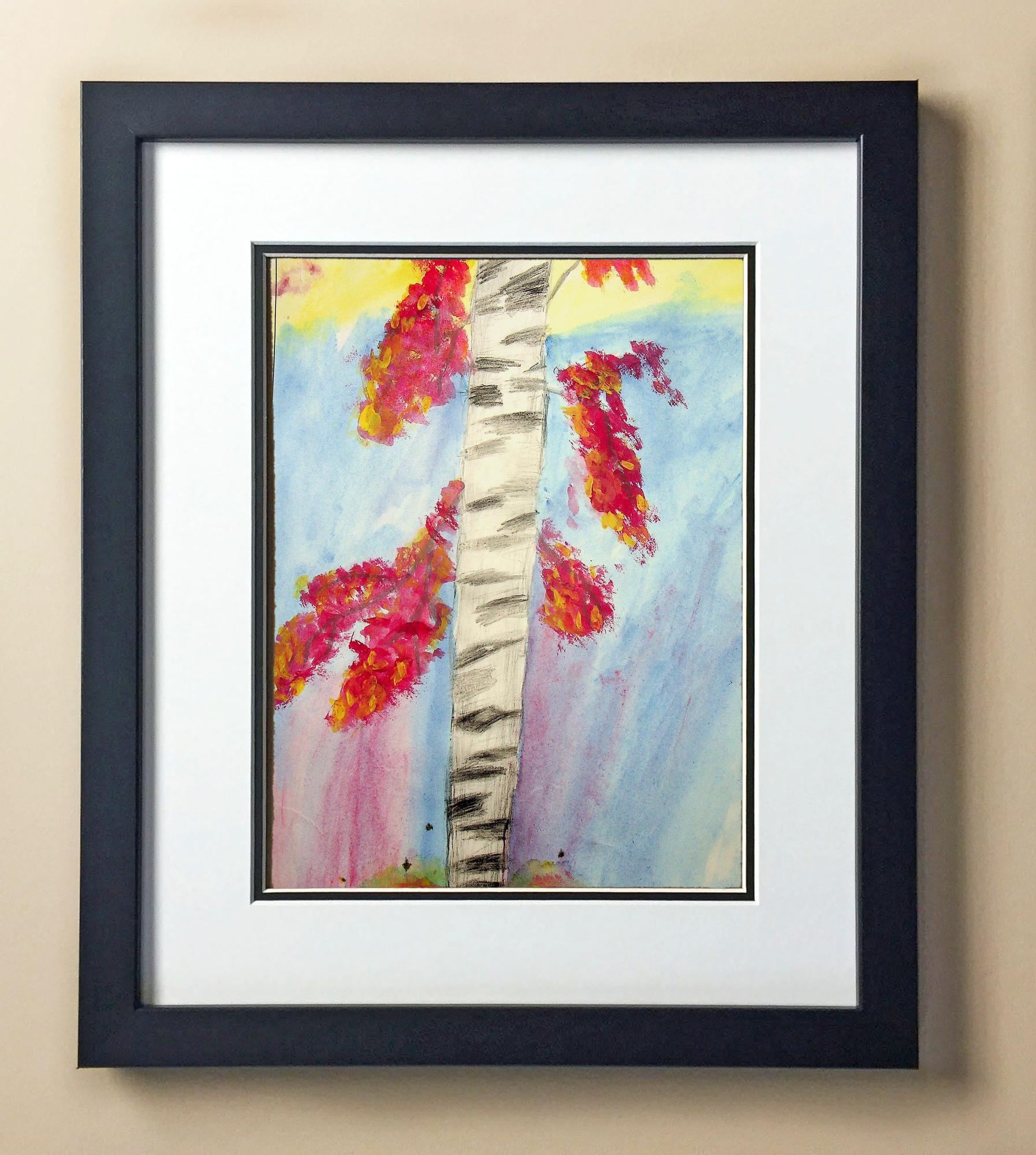 Included with the purchase is the Students Artwork, Frame, double matboard, shatter proof plexiglass, and a ready to hang backerboard with turnbuttons