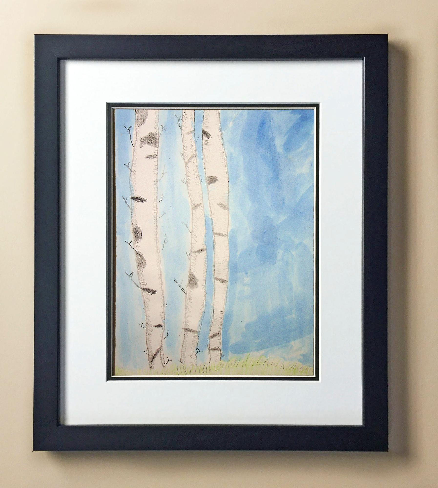 Included with the purchase is the Students Artwork, Frame, double matboard, shatter proof plexiglass, and a ready to hang backerboard with turnbuttons