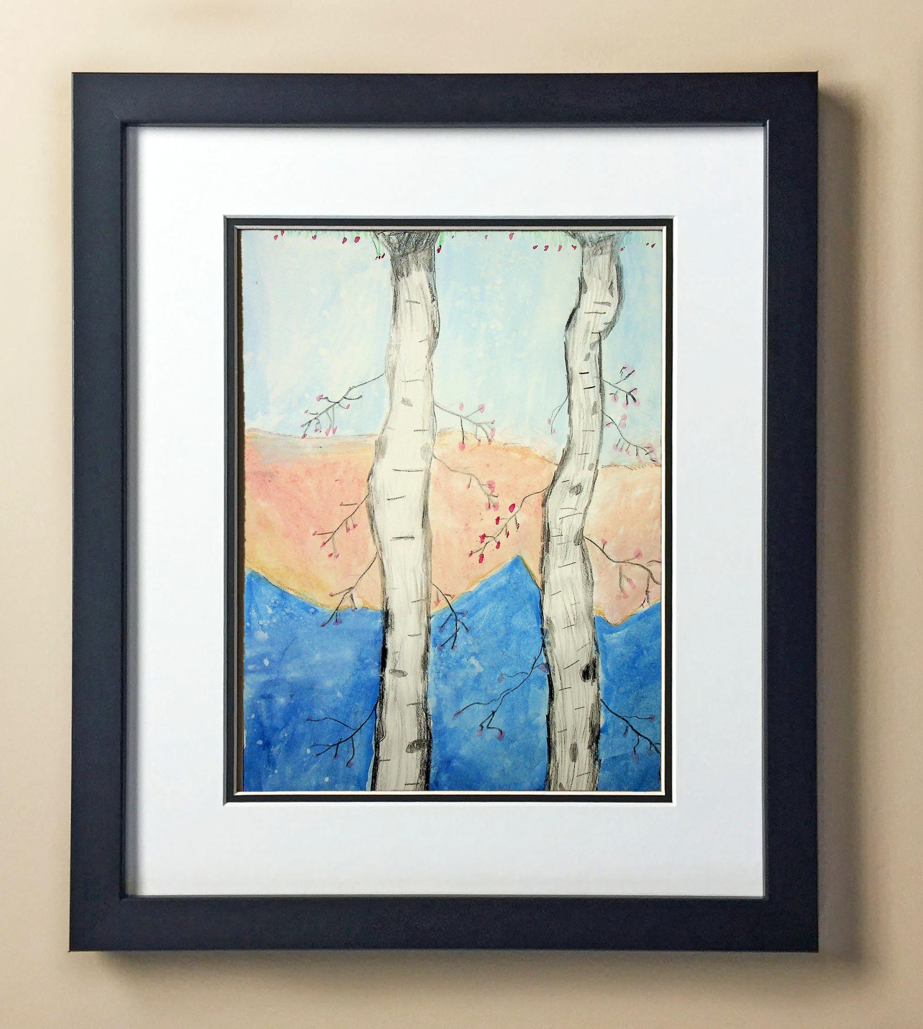 Included with the purchase is the Students Artwork, Frame, double matboard, shatter proof plexiglass, and a ready to hang backerboard with turnbuttons