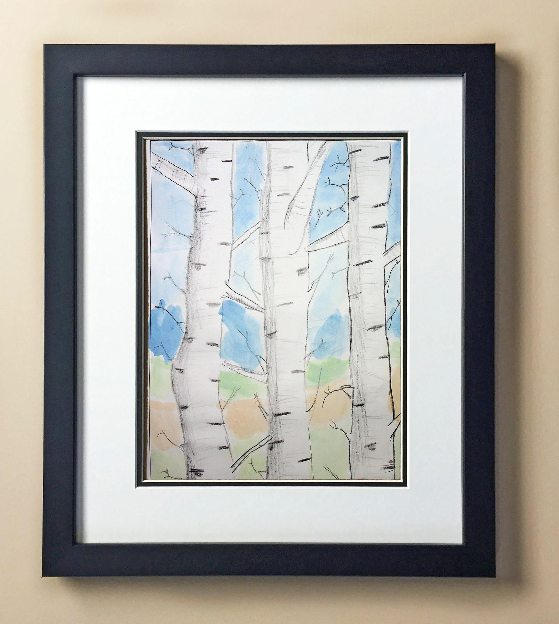 Included with the purchase is the Students Artwork, Frame, double matboard, shatter proof plexiglass, and a ready to hang backerboard with turnbuttons