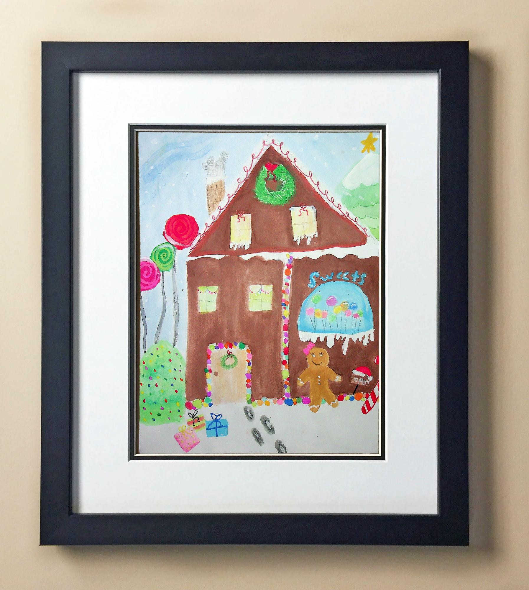 Included with the purchase is the Students Artwork, Frame, double matboard, shatter proof plexiglass, and a ready to hang backerboard with turnbuttons