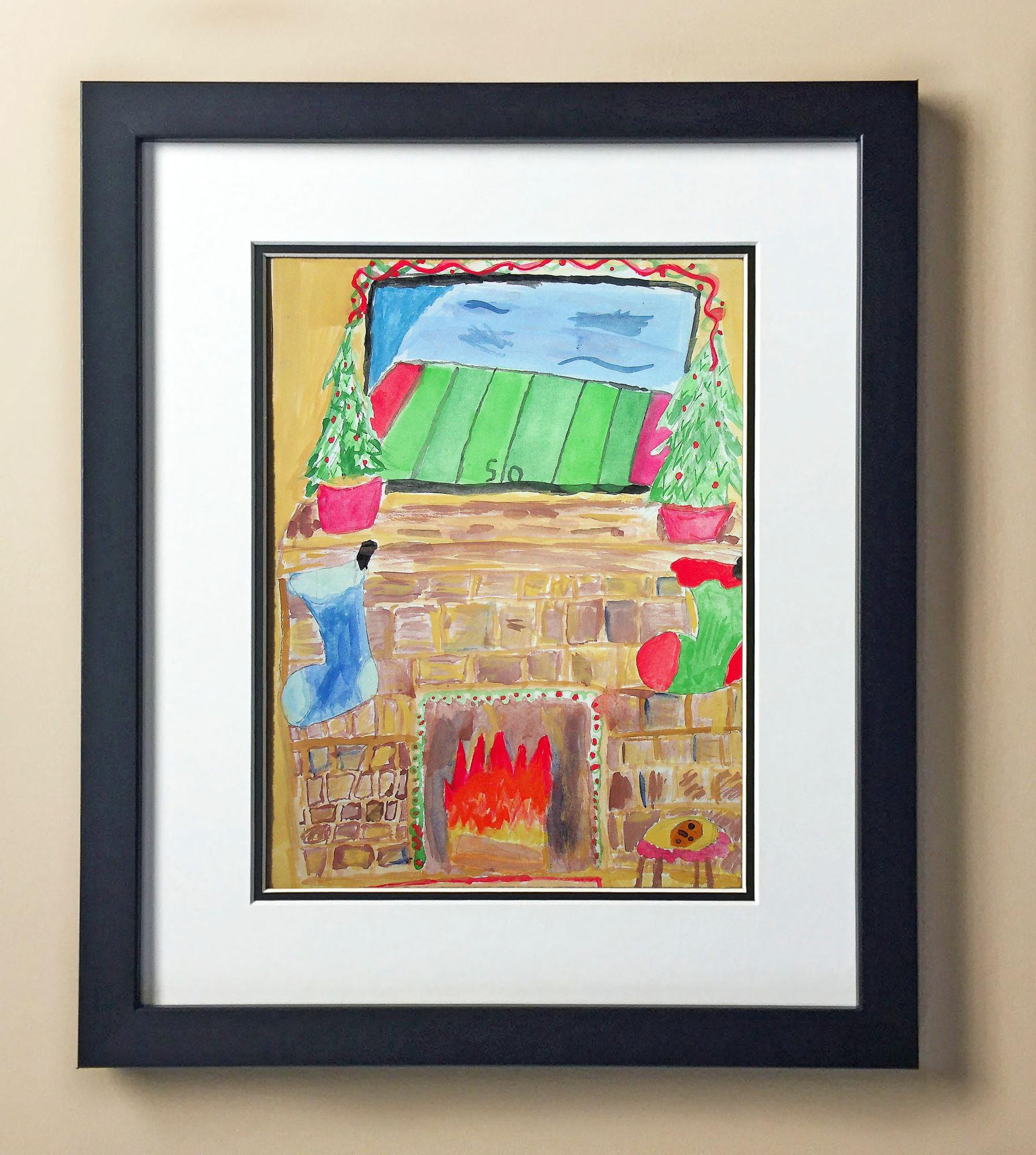 Included with the purchase is the Students Artwork, Frame, double matboard, shatter proof plexiglass, and a ready to hang backerboard with turnbuttons