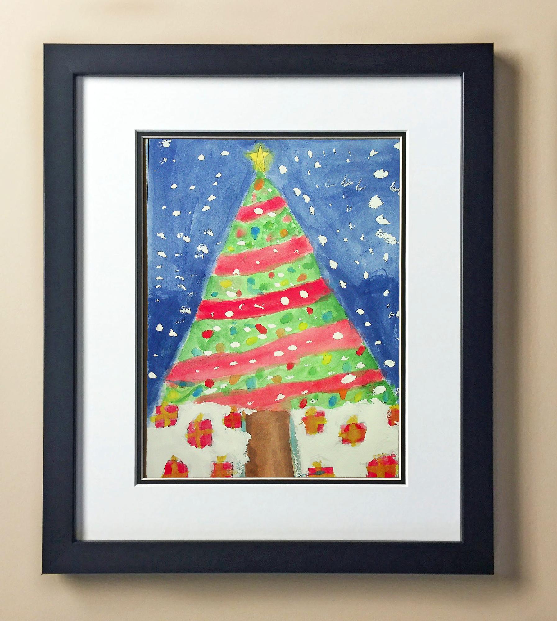 Included with the purchase is the Students Artwork, Frame, double matboard, shatter proof plexiglass, and a ready to hang backerboard with turnbuttons
