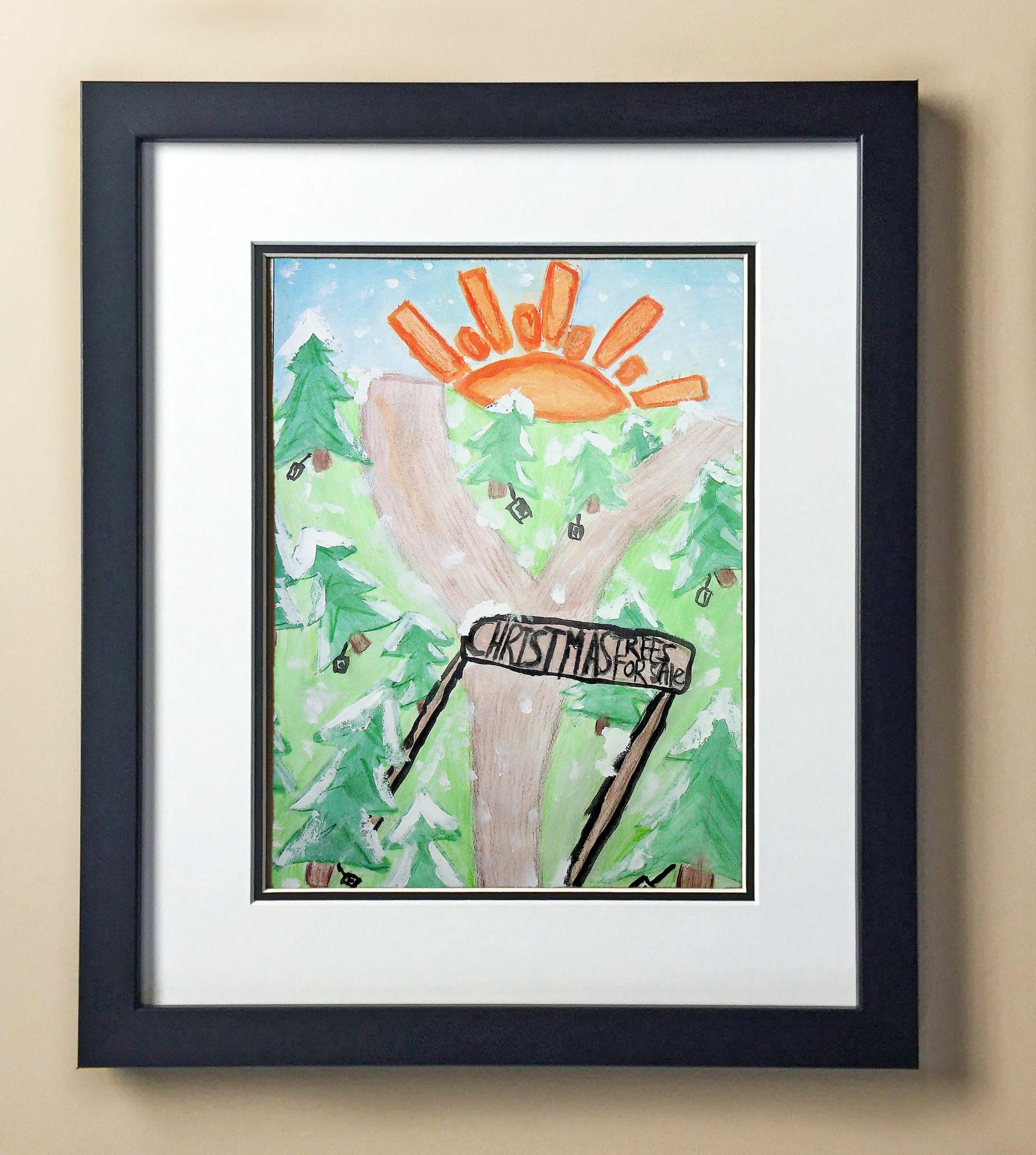 Included with the purchase is the Students Artwork, Frame, double matboard, shatter proof plexiglass, and a ready to hang backerboard with turnbuttons