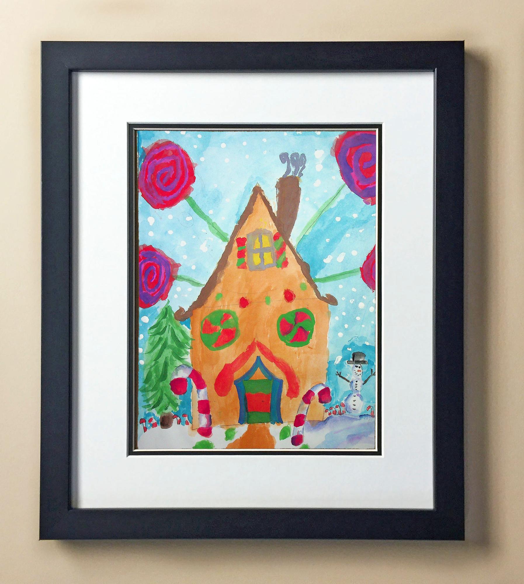 Included with the purchase is the Students Artwork, Frame, double matboard, shatter proof plexiglass, and a ready to hang backerboard with turnbuttons