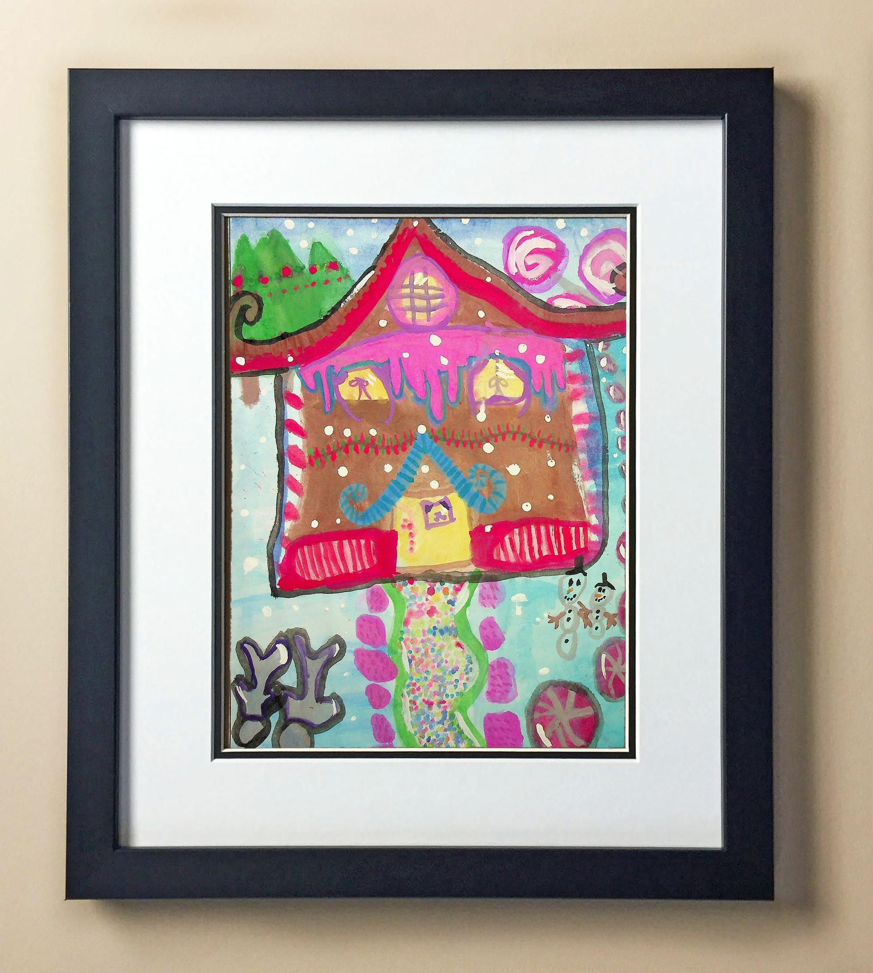 Included with the purchase is the Students Artwork, Frame, double matboard, shatter proof plexiglass, and a ready to hang backerboard with turnbuttons