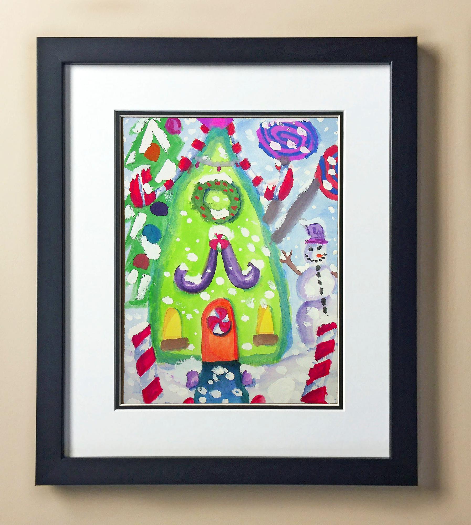 Included with the purchase is the Students Artwork, Frame, double matboard, shatter proof plexiglass, and a ready to hang backerboard with turnbuttons